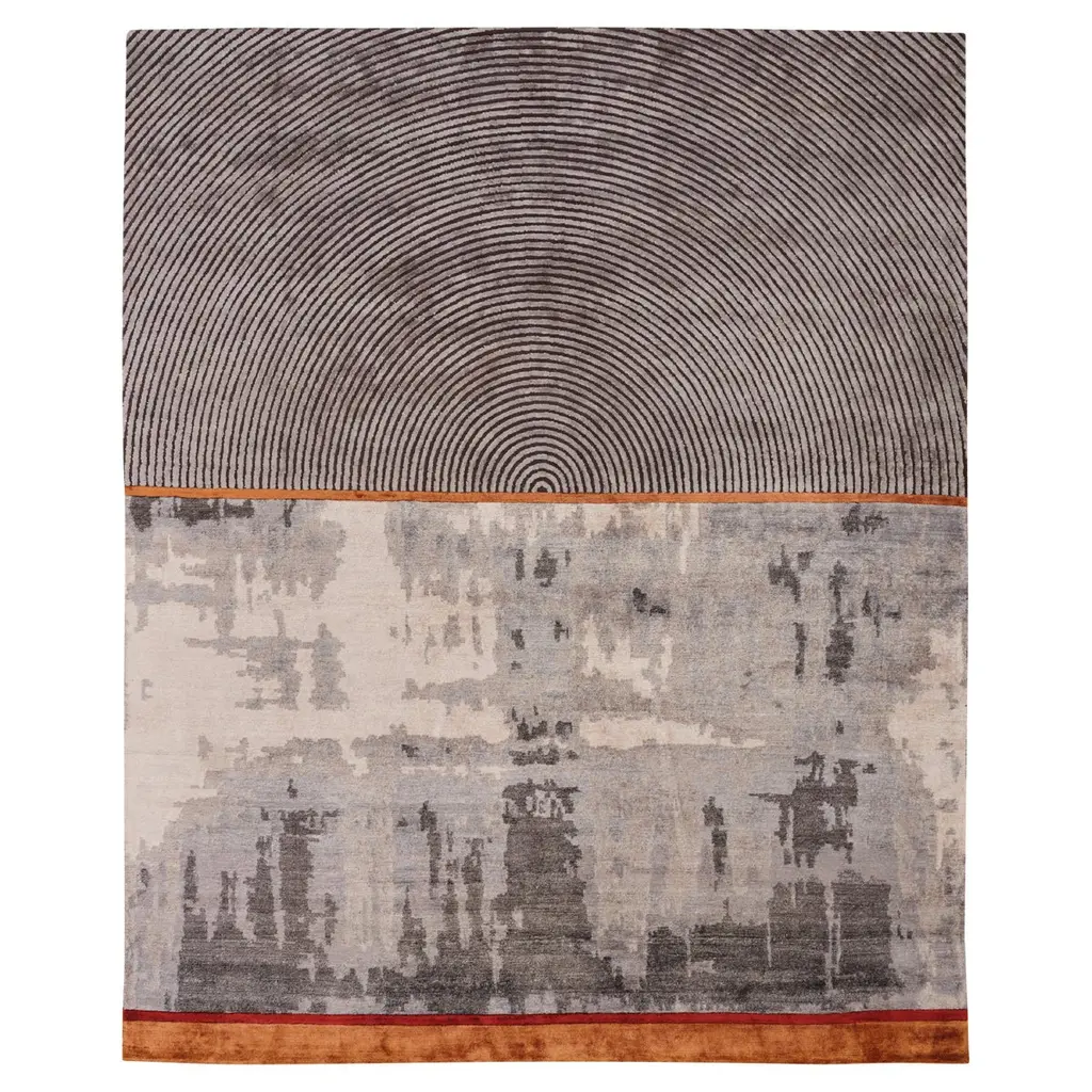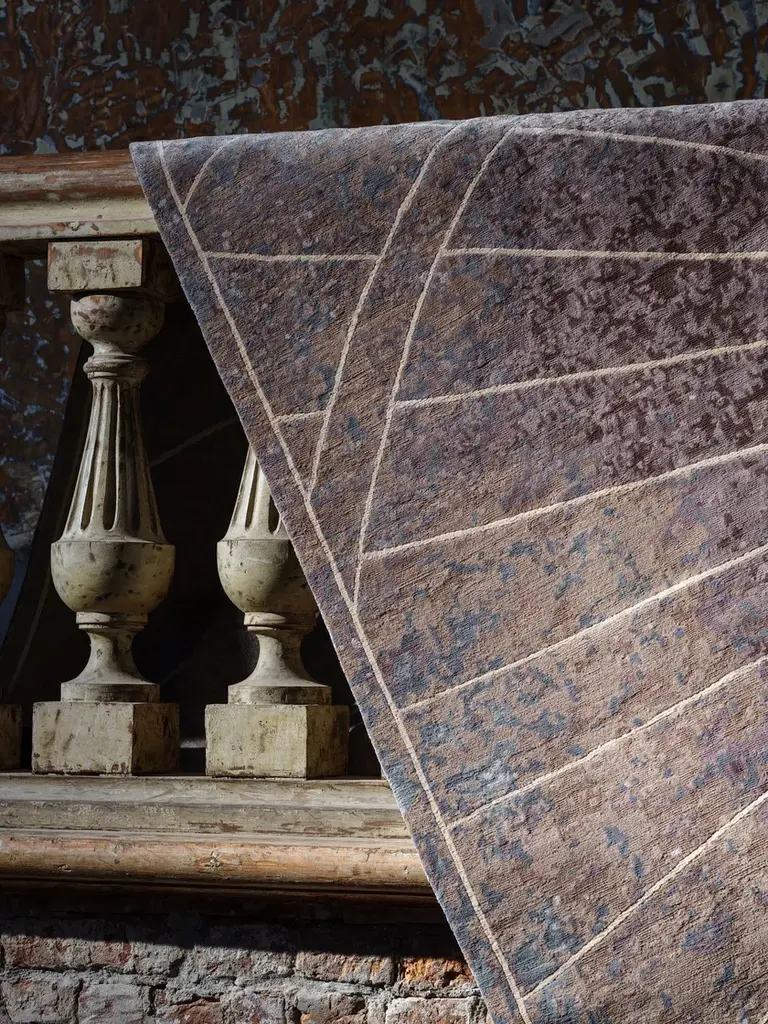 Material: Wool, SilkKnot Density: 150 knots/inch²Pile Height: 4mmTechnique: Hand-knottedCustom sizes and colors on requestThe La Scala collection was inspired by Mike Shilov's admiration for Italian architecture, particularly the beauty and variety of staircases as architectural elements.The collection is the result of research into the different functions of this element, from ancient times to modern and contemporary styles, from celebratory, scenic, and monumental functions, neoclassical and baroque to modern architecture. The design in the collection reduces the element to its essentiality of outlines that gravitate into a metaphysical space in the shades of different terrestrial and non-terrestrial, complex color combinations. All rugs in the collection have a knot density of 150 knots/inch², a pile height of 4mm, and a variable combination of precious wool and silk.The Venezia Celeste Rug is made of 18% wool and 82% silk, available in four sizes and custom-made