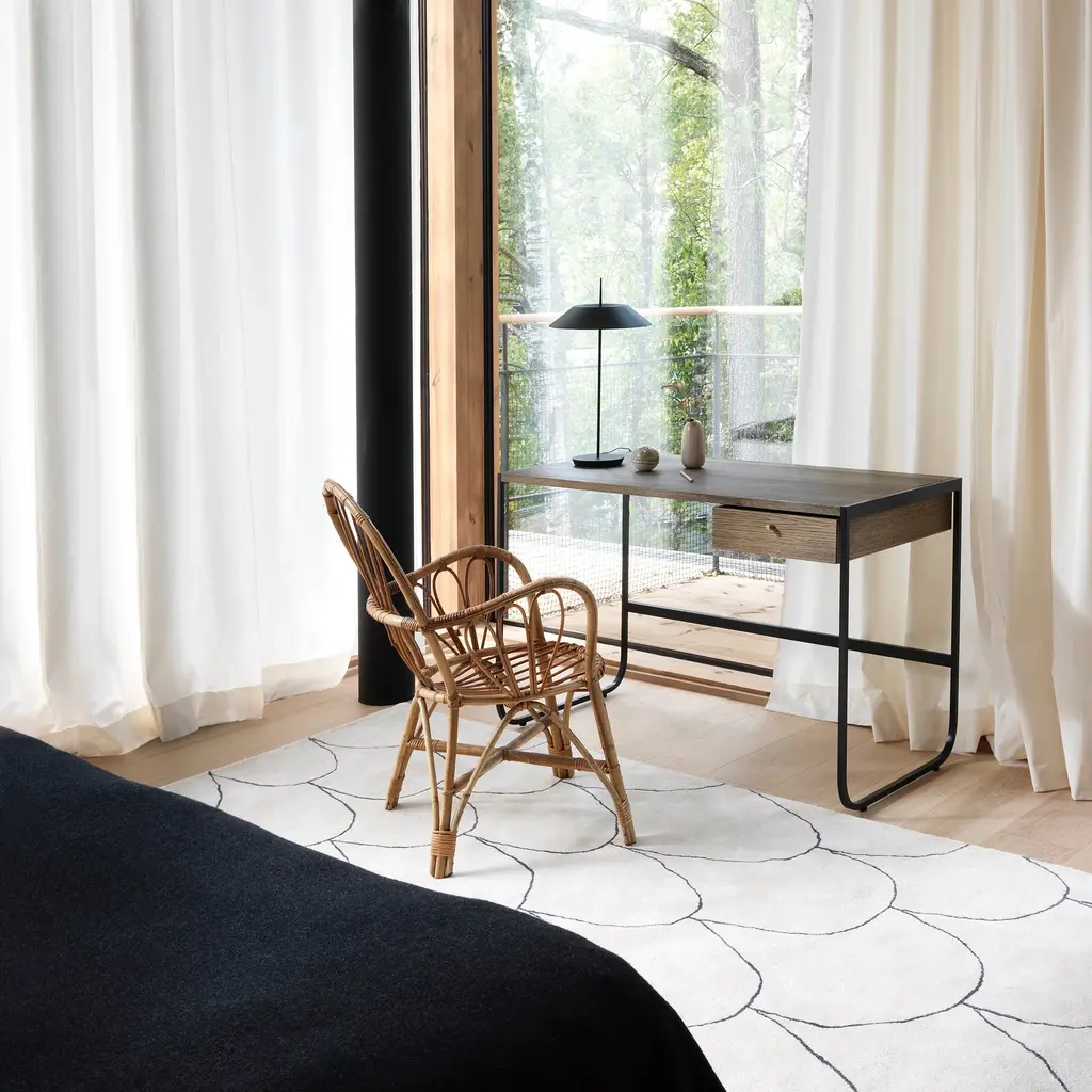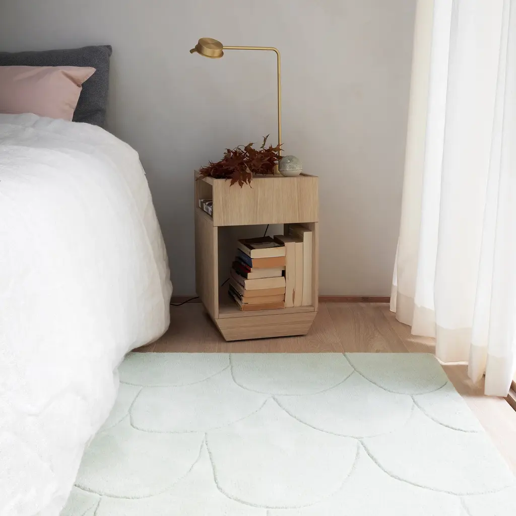 Woven and knotted by the hand of skilled craftsmen, designer Thomas Sandell’s sprightly abstraction of fish scales patterns this luxurious area rug from Asplund’s Platinum series. In a mixture of 75 percent New Zealand wool and 25 percent silk, Fish’s succession of tiny knots creates a gorgeously marbled effect and vivid intensity in darker colors. Handcrafting makes each rug unique, like a piece of art that reflects its meld of international traditions and modern Swedish style.