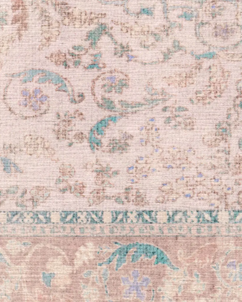 Make a grand entrance with our Bridgerton Fit for a Queen Soft Rose Rug. Inspired by ornate and embellished Regency-era interiors, this traditional rug design has lovely floral motifs reminiscent of royal garden parties. The antiqued and distressed style features soft purples, powder blues, soft rose pinks, and royal teal blues against a blush pink background. Water-resistant, stain-resistant, and machine-washable. Rug colors may vary slightly according to your device and the lighting in your space.