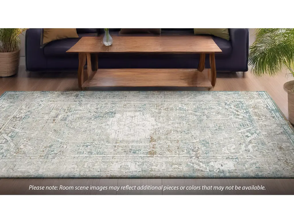 Bring classic elegance to your living space with the Dynamic Flare Beige/Ivory/Blue Area Rug. Featuring an intricate medallion motif, this traditional-style area rug blends vintage charm and modern durability. Machine woven in Turkey from polyester.