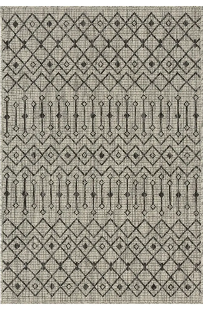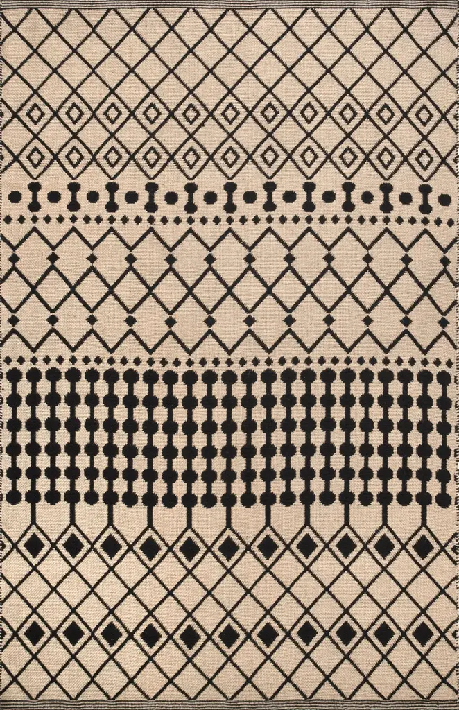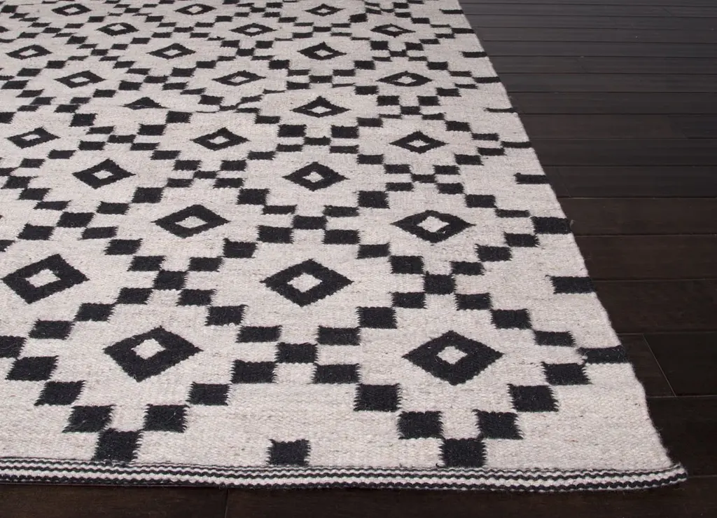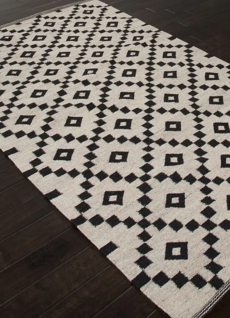 Flat-Weave Geometric Ivory/black Wool Area Rug- Cubic
