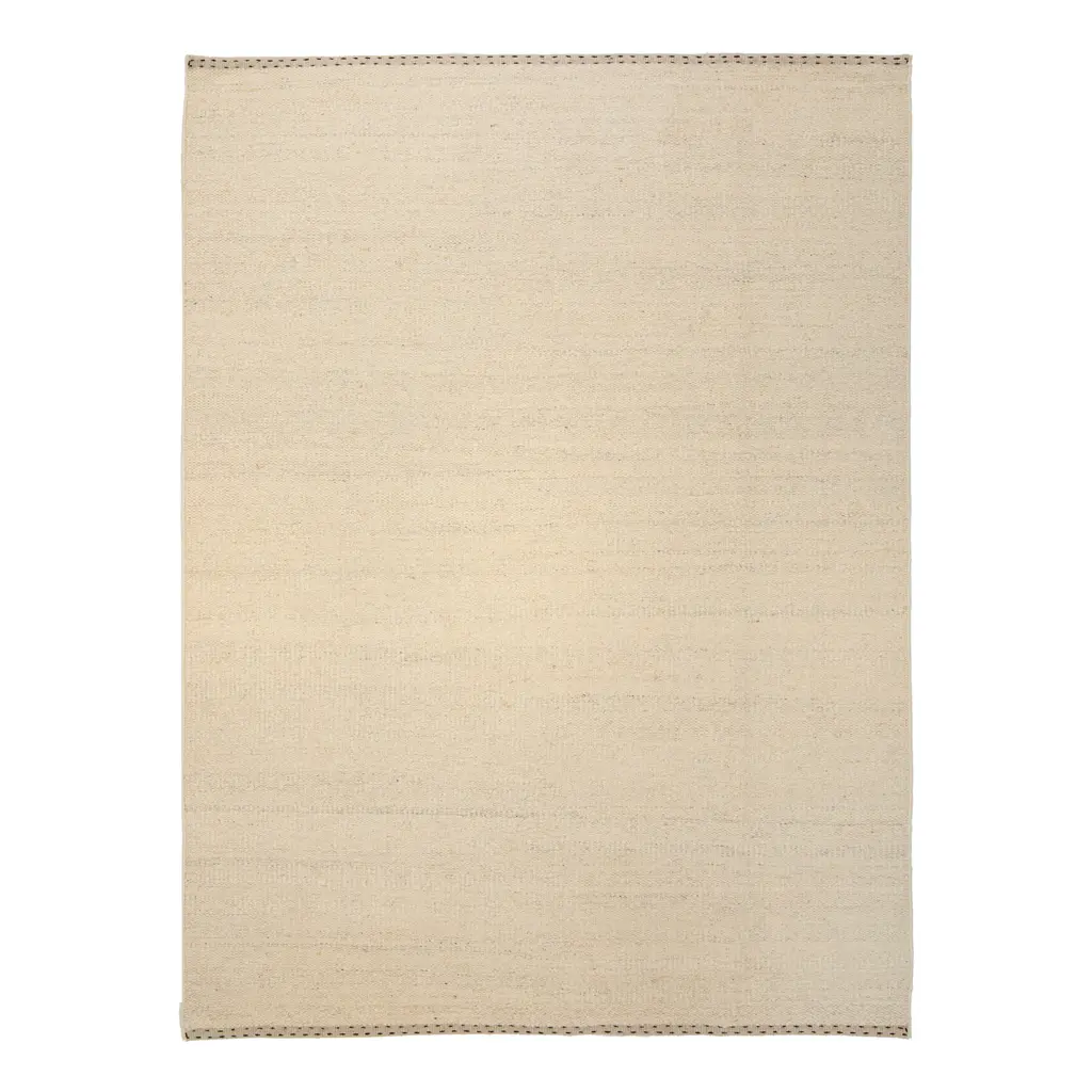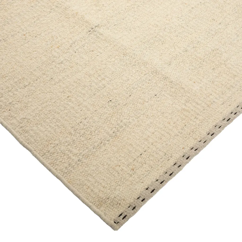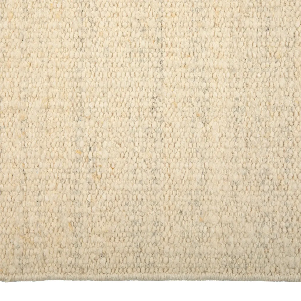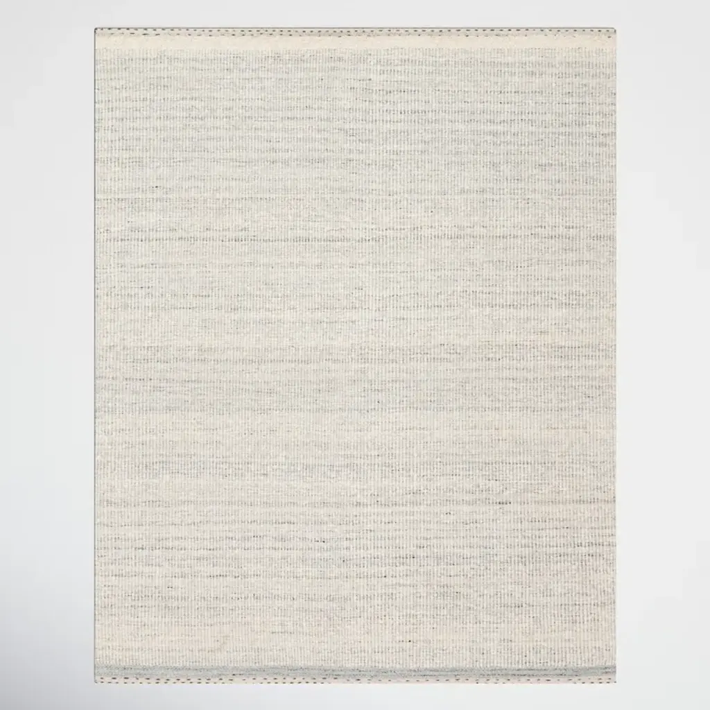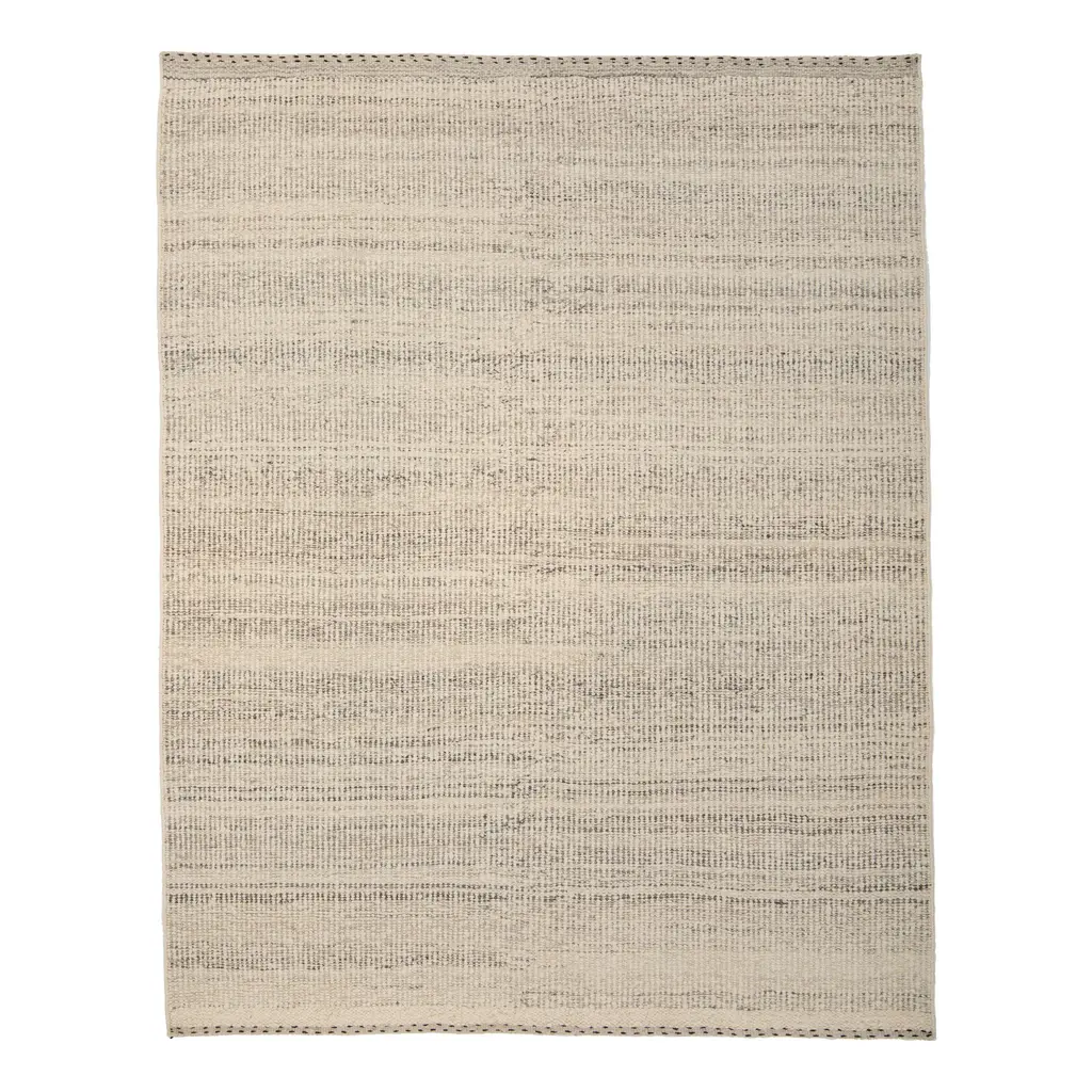 This 8' x 10' Flatweave Wool Linen Rug, identified by Color 1726, offers a blend of natural materials and traditional craftsmanship. Handwoven in India, this rug is categorized as a flatweave or kilim, known for its distinct construction without a pile. Constructed from a durable blend of wool and linen fibers, the rug presents a robust yet refined texture. The combination of these materials provides natural resilience, breathability, and a soft underfoot feel. Wool contributes to the rug's strength and natural stain resistance, while linen adds a subtle sheen and a distinct, organic texture. The design features a natural color palette, where Color 1726 translates to a light, neutral base with subtle variations from the inherent characteristics of the wool and linen yarns. These variations create a textured, horizontally striped appearance, adding depth without a bold pattern. This minimalist aesthetic makes the rug versatile for various interior styles, including modern, Scandinavian, coastal, and transitional decors. Measuring 8 feet by 10 feet, this large area rug is suitable for defining spaces in living rooms, anchoring dining room sets, or adding warmth to master bedrooms. The flatweave construction results in a low-profile rug that lies flat, making it an excellent choice for high-traffic areas and under furniture. It is also reversible, offering extended wear and flexibility in placement. The absence of a pile makes maintenance straightforward. This Indian-crafted wool linen rug combines functionality with an understated design, providing a durable and stylish foundation for any room.