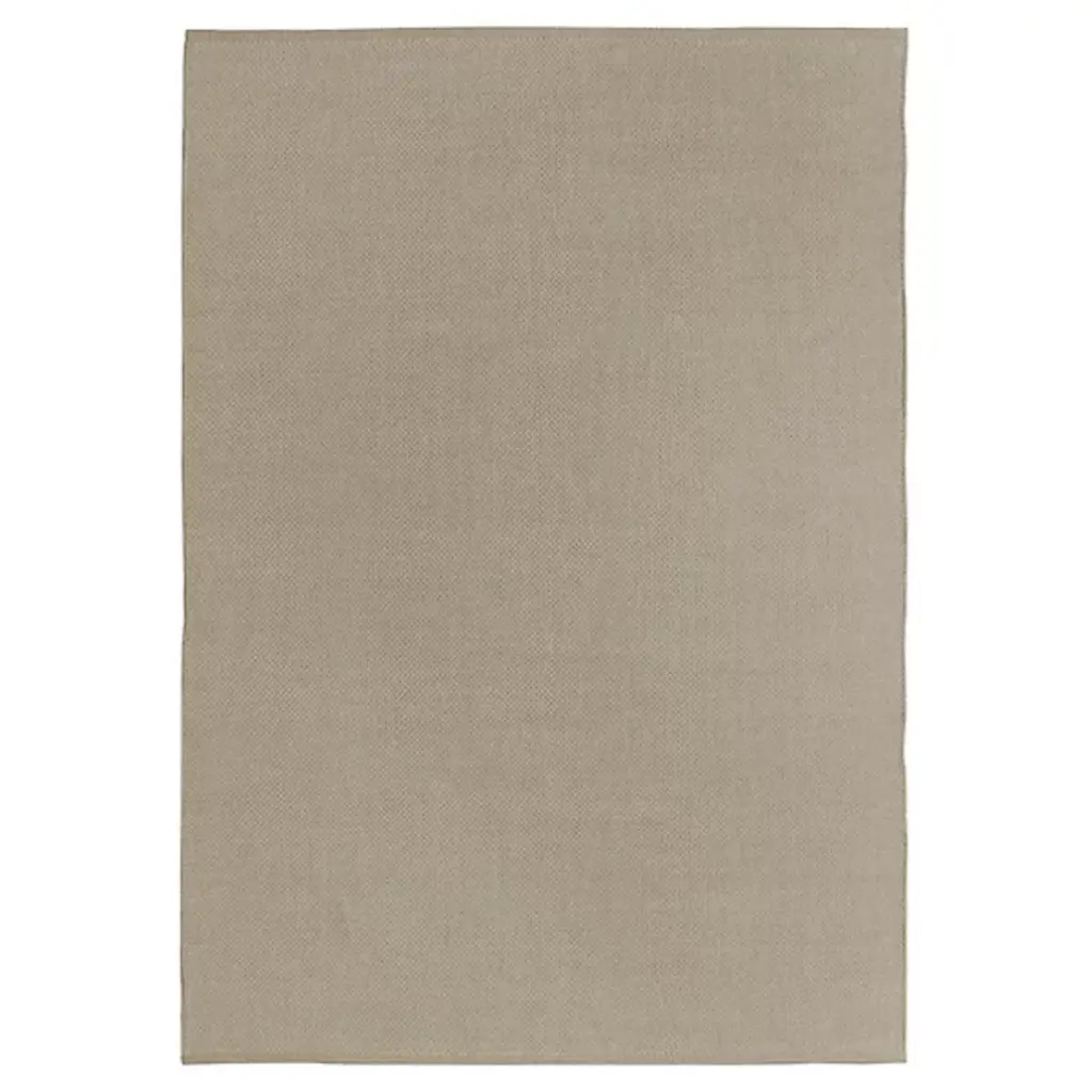 Clean and simple. This rug's woven texture and natural tan color combines the classic look of jute with the ease of washability. Made with recycled + virgin polyester, and polyurethane.