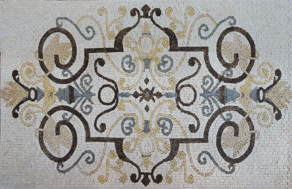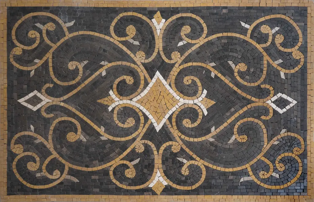 Floor Mosaic Rug - Vivianne - 130cm X 65cm (51" X 26") / With Frame