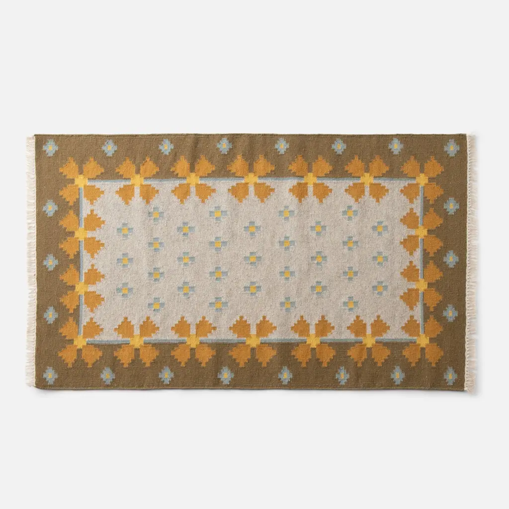 A bold rug inspired by Scandinavian and folk florals, the Flora Wool Flatweave Rug comes in three statement-making palettes to suit a variety of spaces. Woven wool gives it depth that will stand the test of time, even in high-traffic areas.
