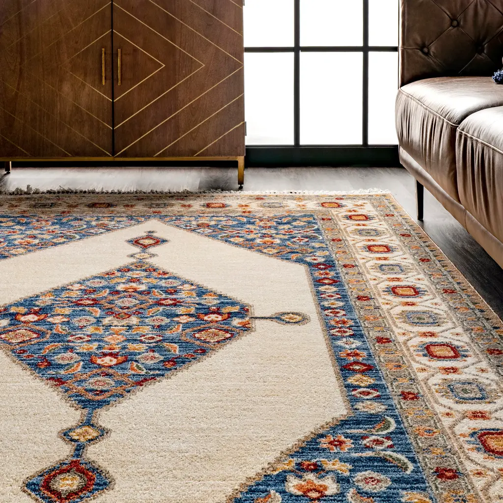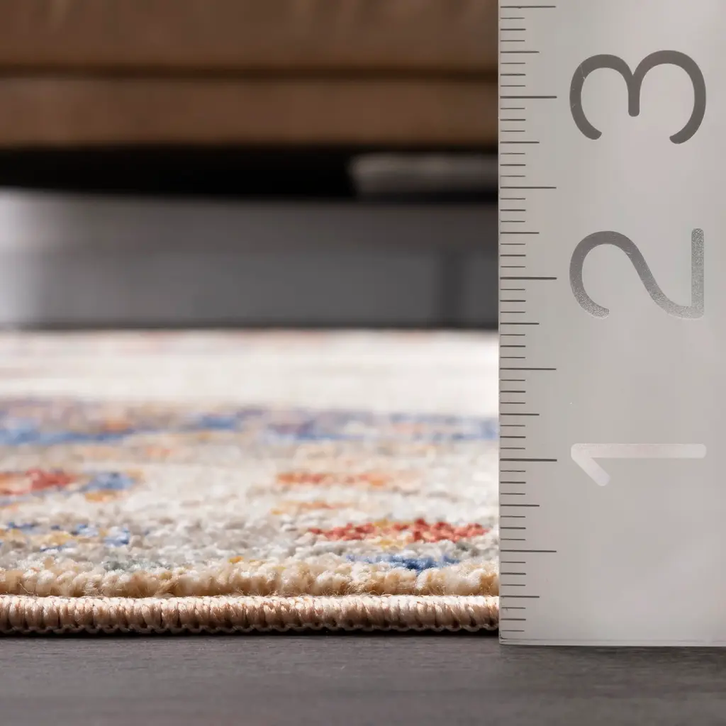 With beautiful contrasting shades, the vintage pattern of this area rug creates an incredibly impressive space. Set your living space apart with this intricate design. Give your home a personal touch, ideal for any room with moderate foot traffic. Comes in an array of shapes and sizes. Make the most of your time at home with our pet-friendly and easy to clean area rugs.