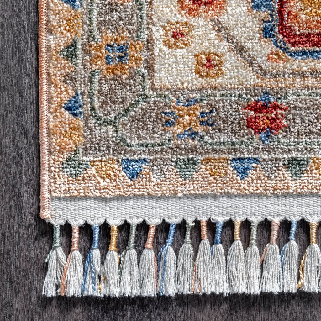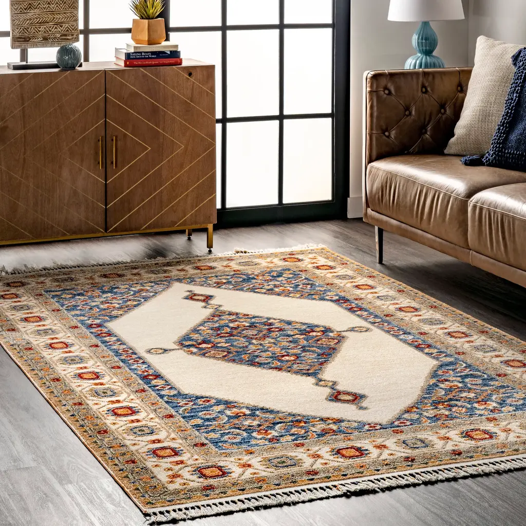 Floral Cardinal Medallion Rug | Ivory - 3' X 5'