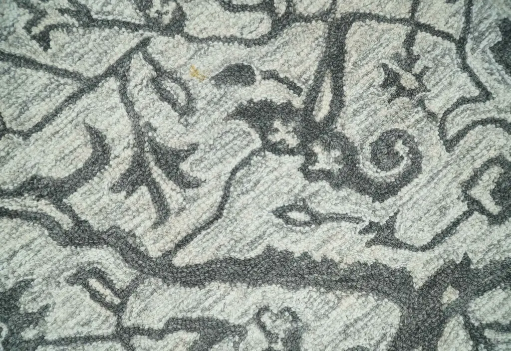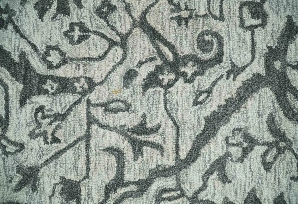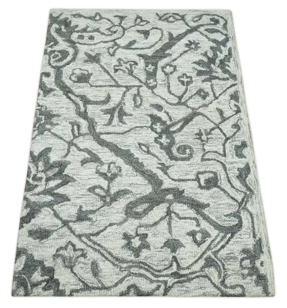 Floral Ivory And Charcoal Wool Hand Woven Layering Multi Size Area Rug - 2.6x8