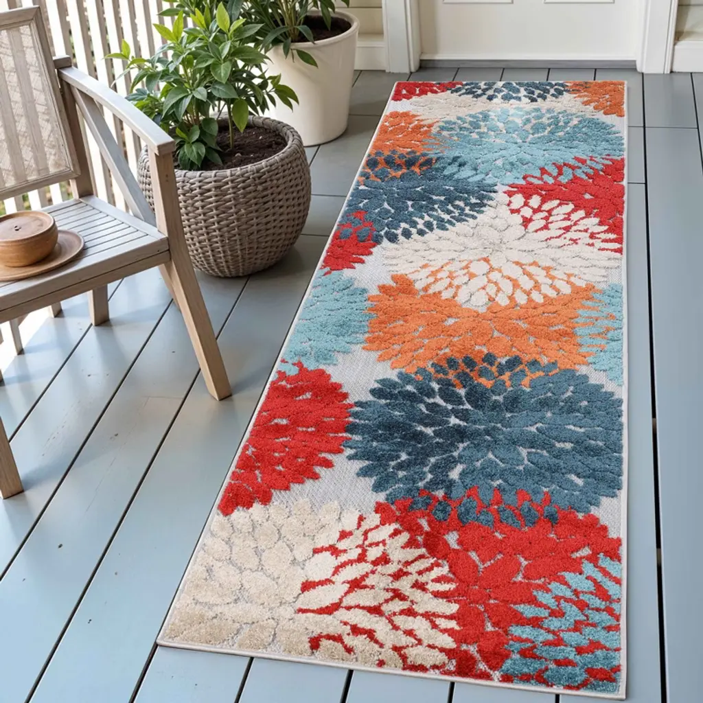 Floral Medallion Indoor Outdoor Area Rug, 2'3"x8', Multicolor - Blue Nile Mills