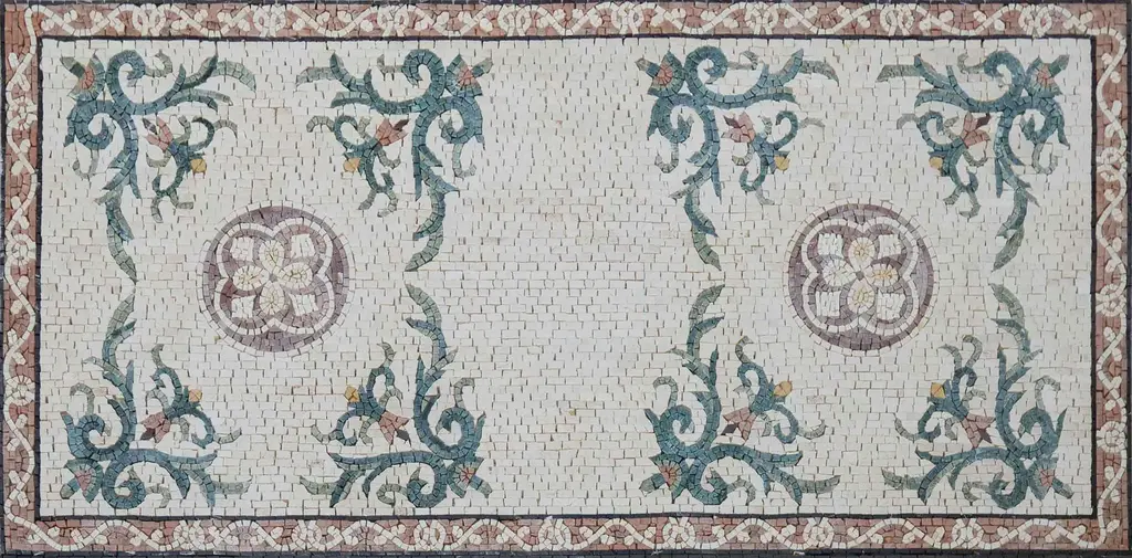 Introducing our stunning Floral Mosaic Rug, a perfect blend of artistry and craftsmanship that will elevate the style of any space. This exquisite rug features a rectangular design adorned with intricate floral patterns, each beautifully highlighting a mosaic flower at the center. The combination of vibrant colors and detailed designs brings a touch of nature indoors, creating a serene and inviting ambiance.Crafted from handcut natural stones, our Floral Mosaic Rug showcases the timeless beauty of marble mosaic art. Each piece is meticulously designed to ensure durability and long-lasting quality, making it suitable for both indoor and outdoor settings. Whether you're looking to enhance your living room, patio, garden, or entryway, this rug serves as a stunning focal point that seamlessly blends elegance with functionality.Imagine the warm, welcoming atmosphere this rug will bring to your home. The floral motifs not only add a decorative touch but also evoke a sense of tranquility and connection to nature. Ideal for various decor styles, from traditional to contemporary, this piece will complement any interior or exterior design.Easy to clean and maintain, the Floral Mosaic Rug stands up to the demands of everyday use, ensuring it looks as vibrant and fresh as the day you brought it home. Its versatile size allows it to fit effortlessly in various spaces, offering both comfort underfoot and visual appeal. Transform your home with this artistic masterpiece that reflects your love for nature and beautiful design. Add a touch of sophistication to your surroundings with the Floral Mosaic Rug—the perfect addition to create a cozy and stylish environment. Order yours today and let your floors bloom with elegance!