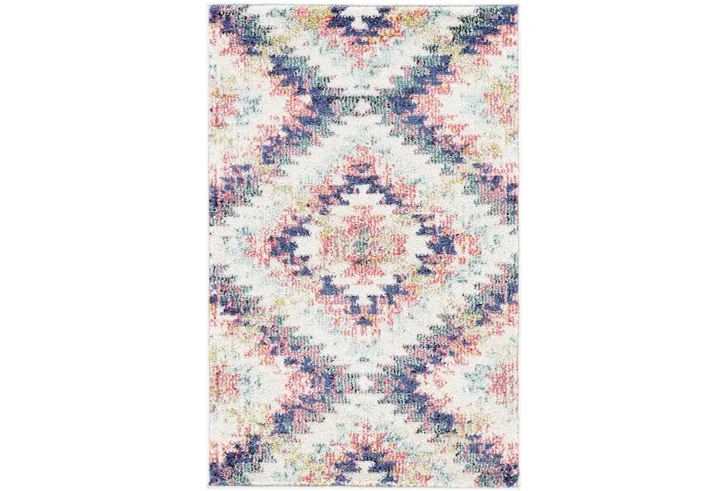 Floral Zillu in Lilacs & White is a rectangular wool rug.Zollanvari ‘minimalist’ kilims are diverse. Baneh kilims are woven in northern regions in sections using natural undyed wools and then skilfully stitched together. The one-piece Zagros kilims woven by the Luri and Ghashgha’i nomads are monochromatic. They have traditional ‘lazy lines’ that form subtle patterns of diamonds and squares. Maryam kilims, woven by the same tribes, have plain ground colours with repeat motifs hand-embroidered in pure silk, awarded Best Innovation at the CDAs in 2009. The jewel in the crown of our ‘minimalist’ flatweaves is a collection that draws inspiration from the old and antique Mazandaran kilims that have appeared on the market in the past decade – a truly modern collection. Caprino is a new flatweave collection woven from undyed goat’s hair on which pile-knotted erratic modernist lines in bright colours are superimposed.