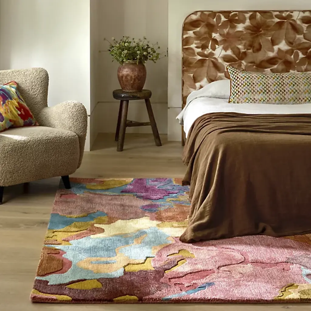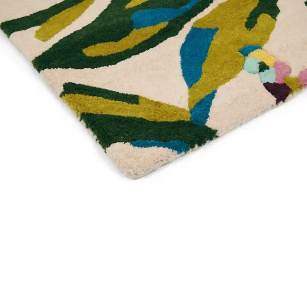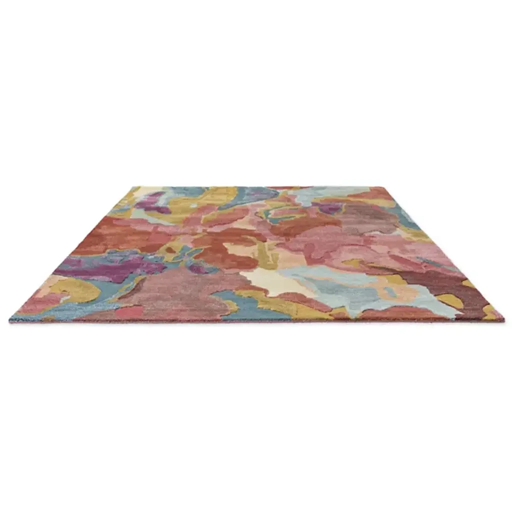 The Floreale Area Rug from Harlequin explodes with tropical blooms in saturated colors that command immediate attention. Handtufted from pure new wool in India, oversized flowers compete for space across every inch of the surface without leaving room for background breathing space. Bold petals overlap in dense arrangements that create constant visual activity and energy. Reserve this statement piece for large, minimally furnished rooms where its exuberant pattern can dominate, or use it as the room's primary color source.