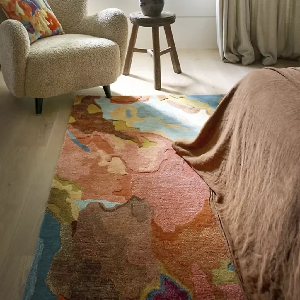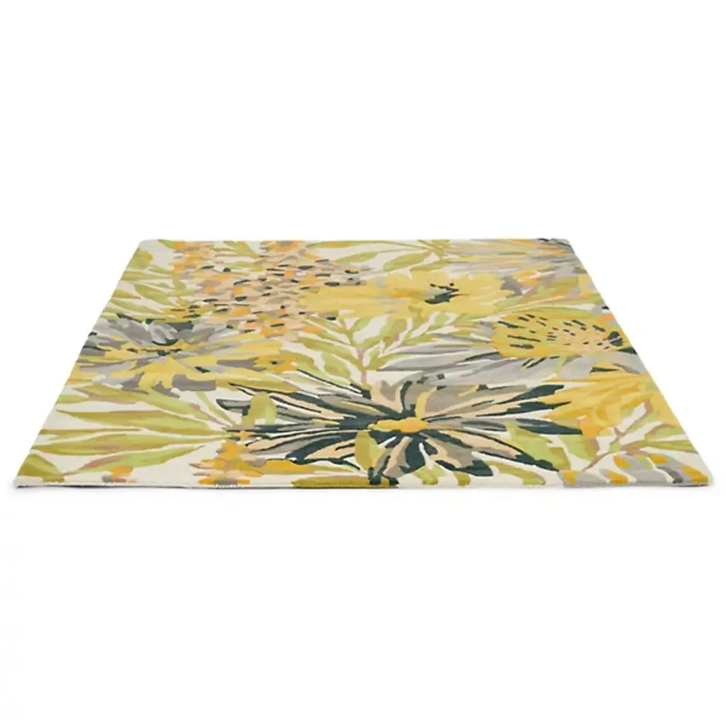 The Floreale Area Rug from Harlequin explodes with tropical blooms in saturated colors that command immediate attention. Handtufted from pure new wool in India, oversized flowers compete for space across every inch of the surface without leaving room for background breathing space. Bold petals overlap in dense arrangements that create constant visual activity and energy. Reserve this statement piece for large, minimally furnished rooms where its exuberant pattern can dominate, or use it as the room's primary color source.