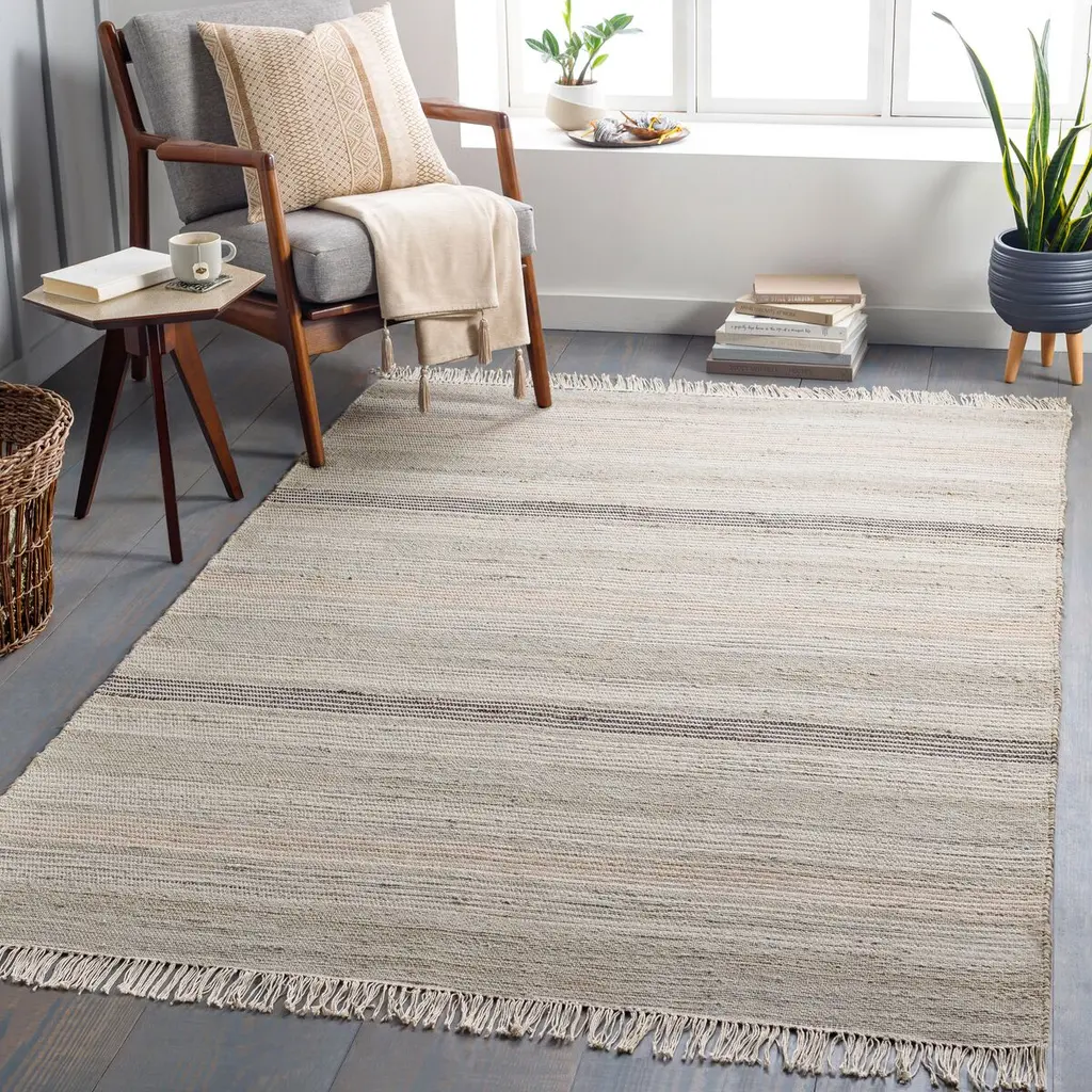 Jute is the softest of the natural fibers used in floor coverings. Here its handwoven with cotton for added durability. With its variegated stripes and 2.5-inch-long fringe, this flat-weave rug will bring artisanal allure to any space. A rug pad is recommended to help prevent slipping and extend the life of the rug.