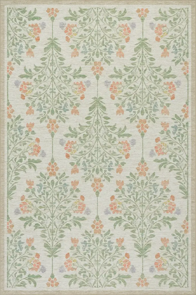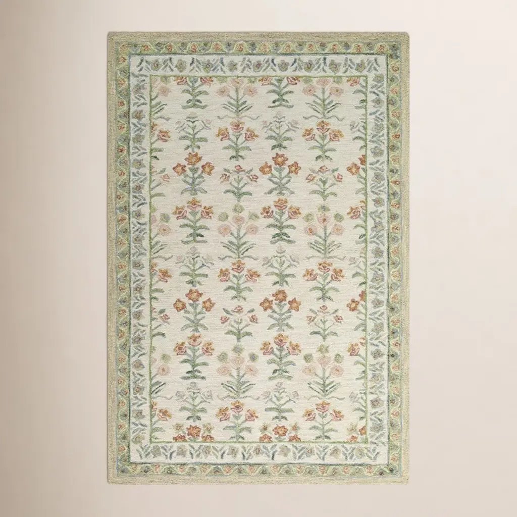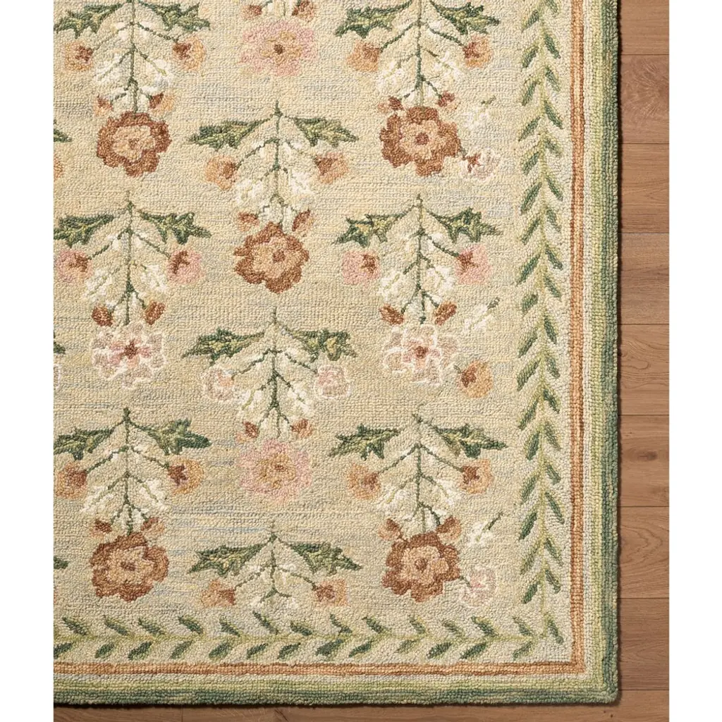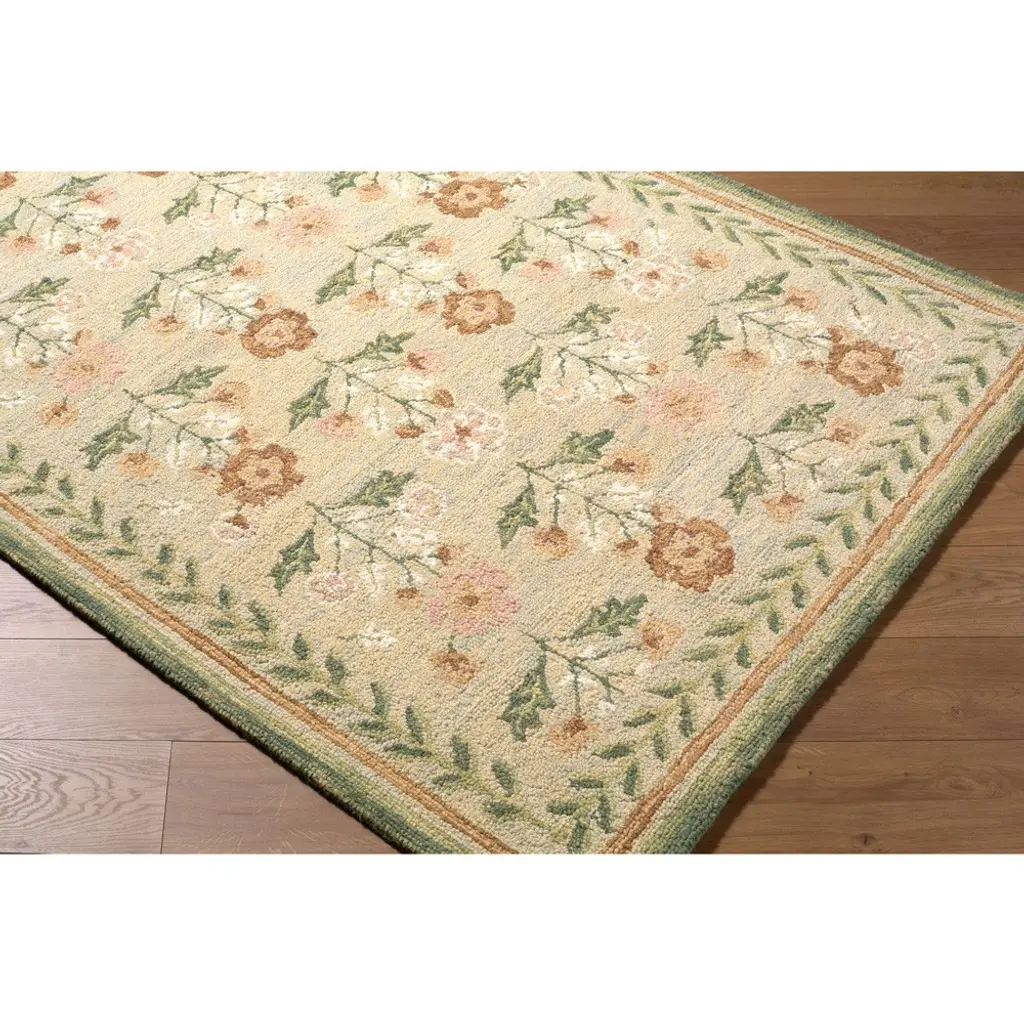 Floryn Updated Traditional Green Wool Floral Patterned Rug - 5'x7'6"