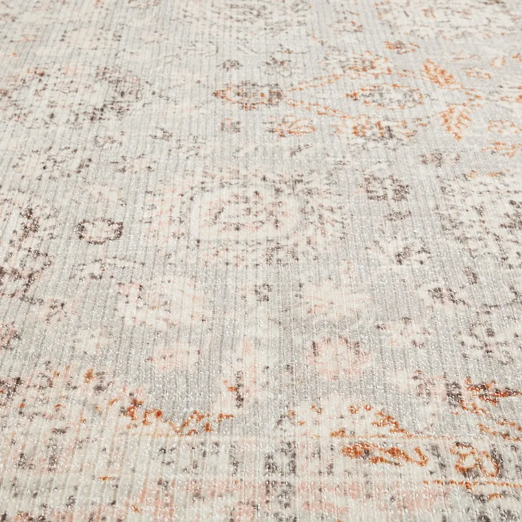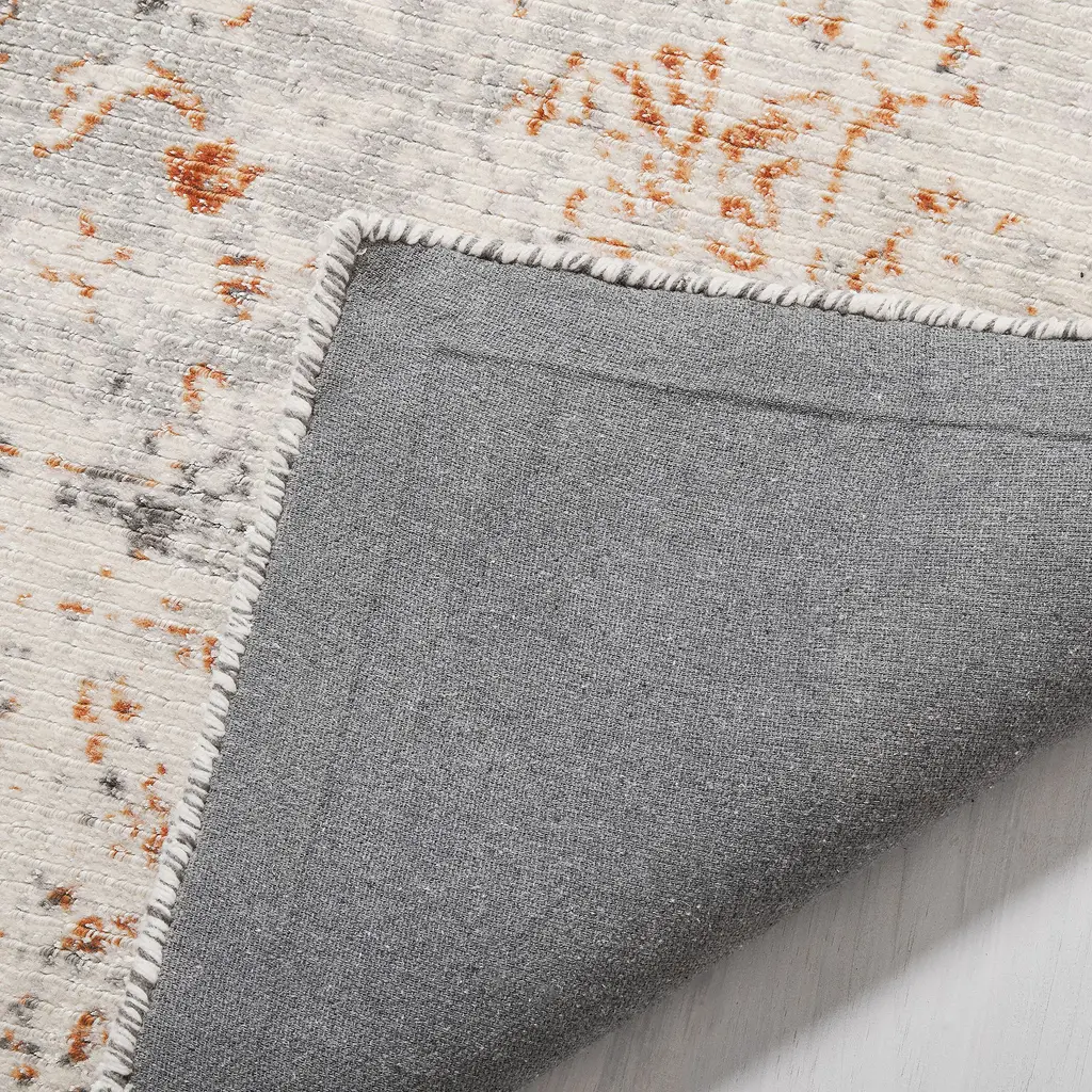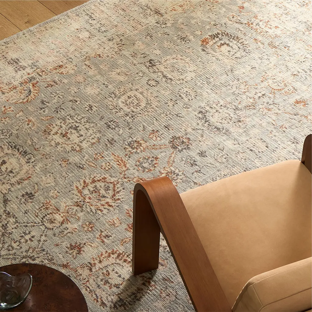 Light distressing reinvents Persian-style florals. Pattern showcases your choice of soft colors. Made with velvety viscose and durable wool.
