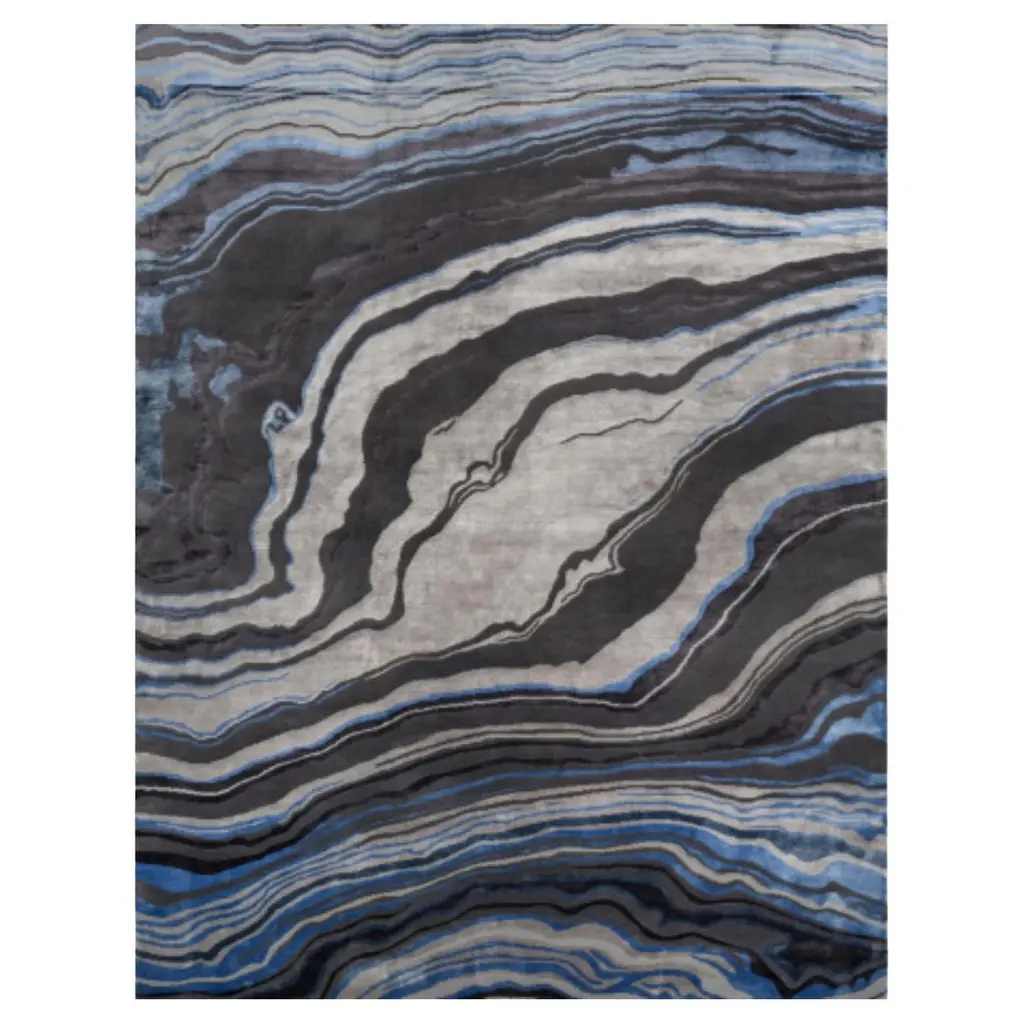 Aptly named after its voluptuous sense of movement, this exquisite rug is a stunning accent for a contemporary interior. The rich layering of subtle nuances, obtained with vegetable and mineral pigments is hand-knotted by Nepalese artisans using 50% Himalayan wool and 50% silk for a soft touch. The base is .05 cm thick and the decoration is .07 cm high. This 152,000 knot/sqm floor decoration can be customized in color, composition of fibers, and size. Please consult the Concierge for details.