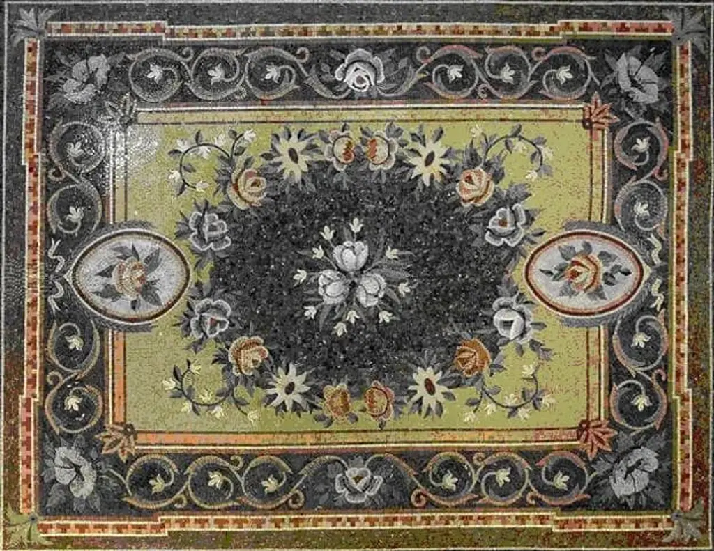 Flower Mosaic Rug Pattern - 150cm X 120cm (59" X 47") / With Frame