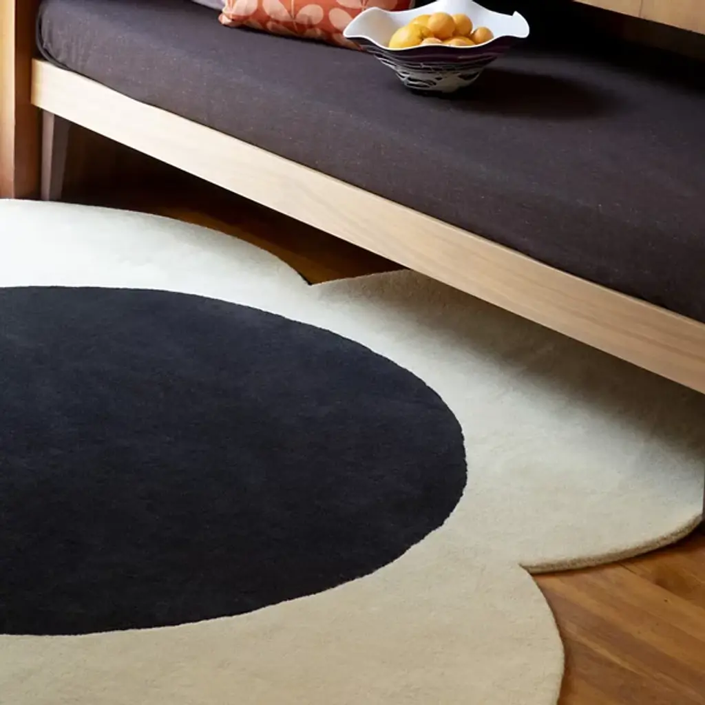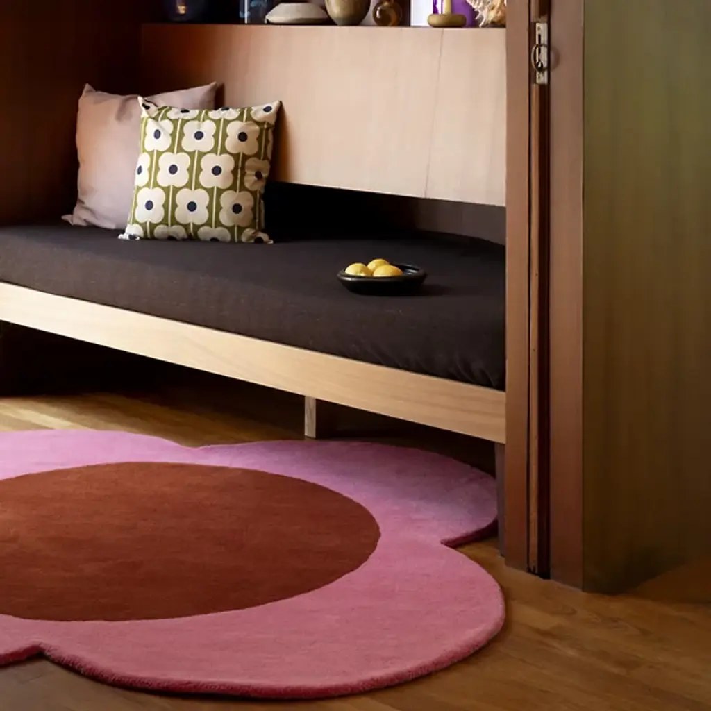 The Flower Spot Round Area Rug from Orla Kiely brings a playful pop to your space with its bold, stylized flower shape in solid colors. Hand-tufted in India from 100% pure new wool, it’s soft, eye-catching, and full of charm. A perfect statement piece to brighten up any room with a cheerful, retro-inspired style.
