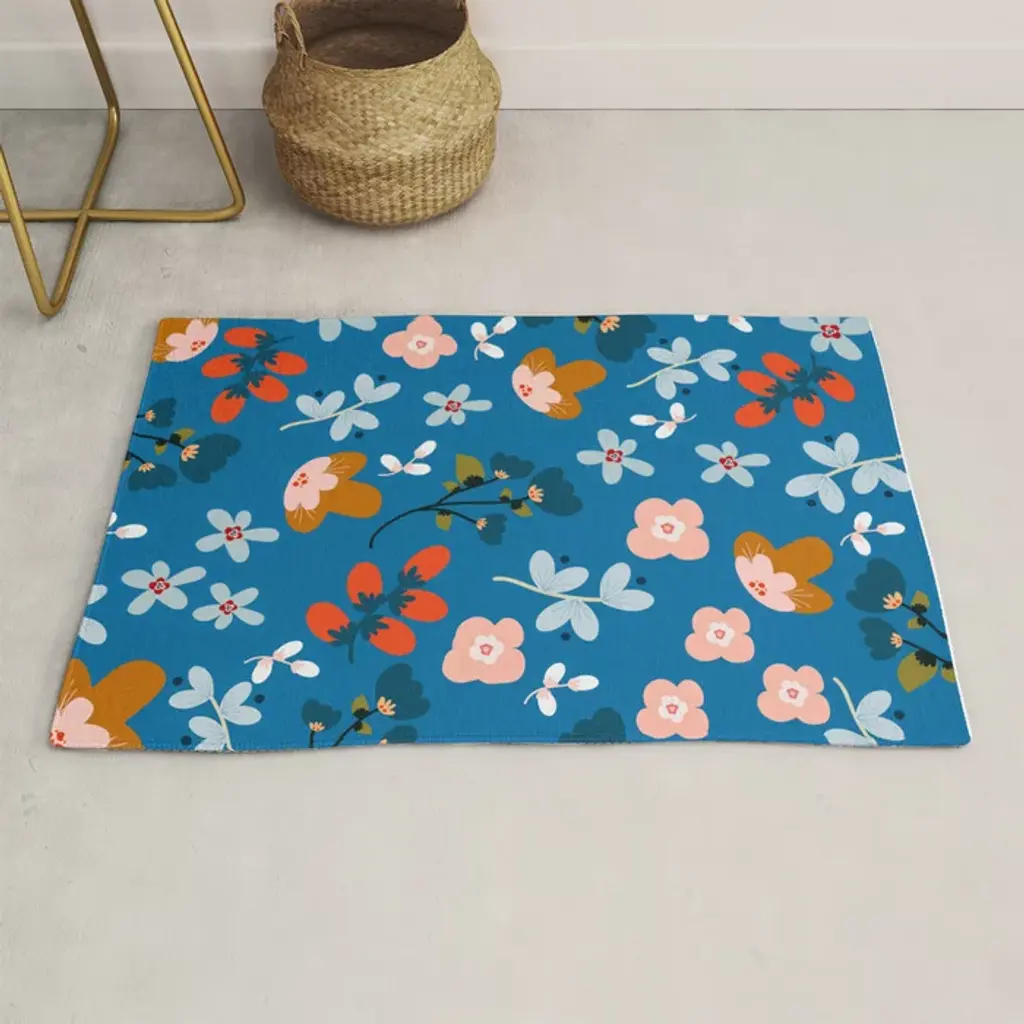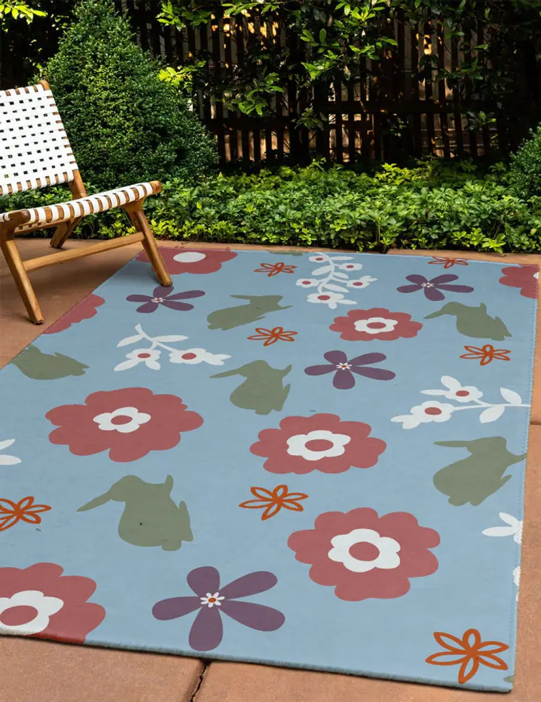 Beautify your home with a Flowery Love with Bunnies Indoor/outdoor Rug from our Flower Power Collection. Everyone will delight in the space defining design brought to your porch, patio, kitchen, or bathroom by this area rug. The artistic and colorful design is printed on a soft polyester base with a skid resistant backing, making it a perfect way to add color, flare and personality to any indoor or outdoor space. To clean, use a mild soap and lay flat to dry.