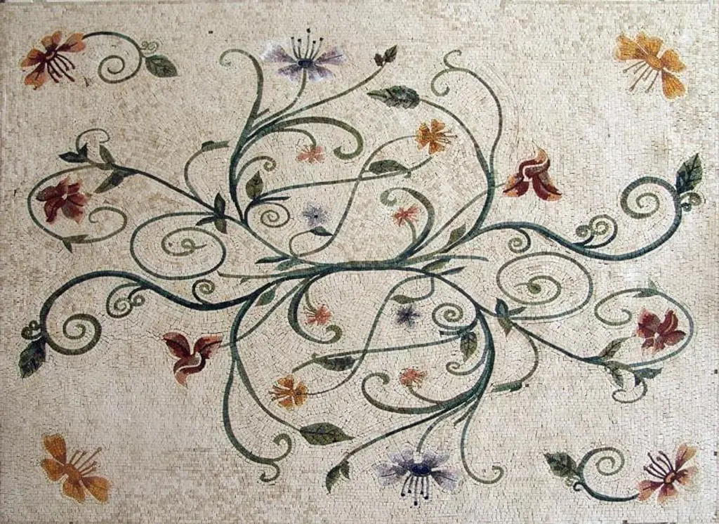 Flowery Mosaic Art Rug Tile | Luxury Handcrafted Natural Stone - 208cm X 156cm (82" X 61") / Without Frame