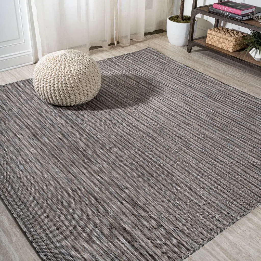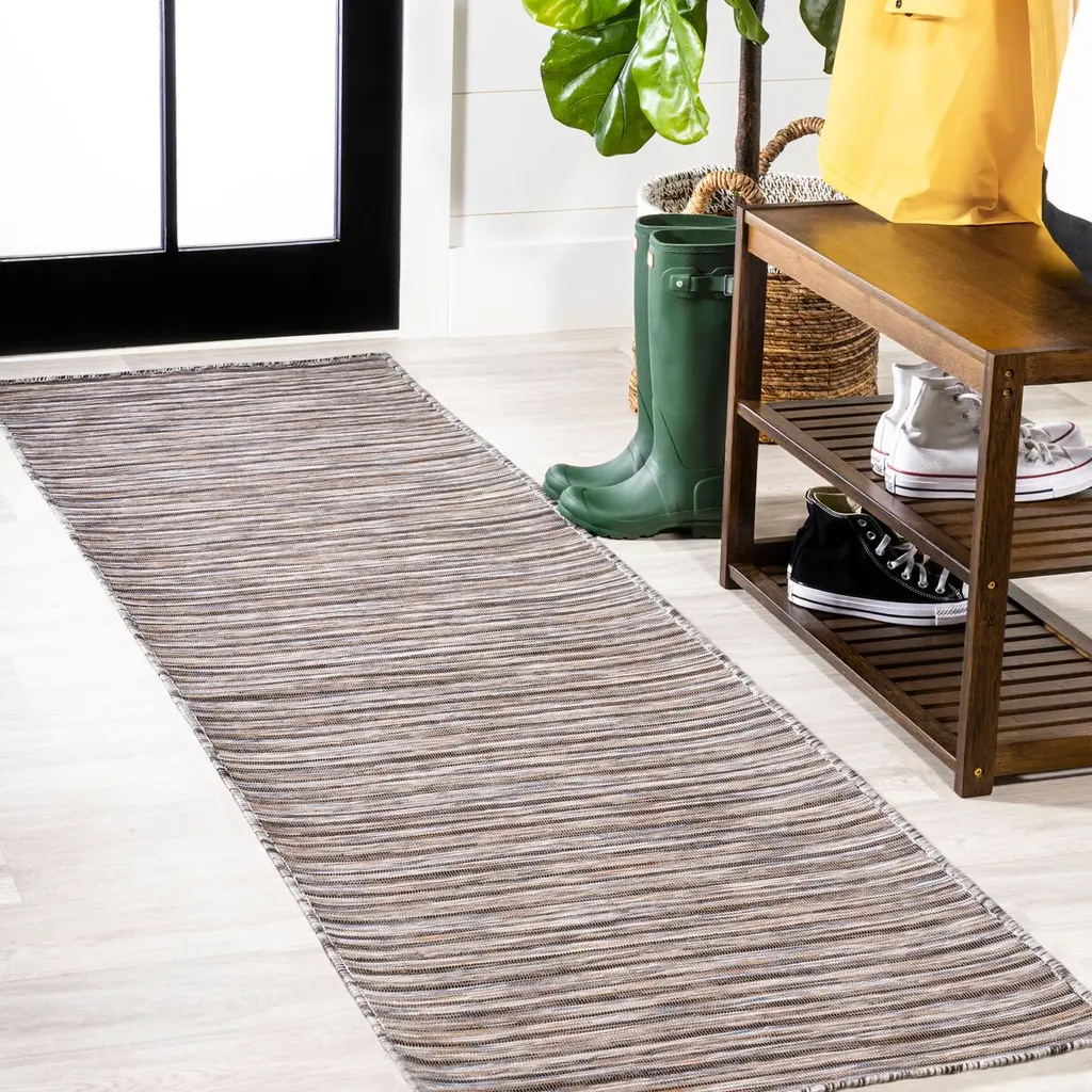 The heathered stripes of this flat-weave rug give it a sense of depth and artisanal appeal. Made of fade-resistant, nonshedding polypropylene, the rug is suitable for high-traffic areas both indoors and outside. A rug pad is recommended to help prevent slipping and extend the life of the rug.