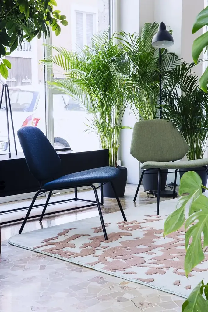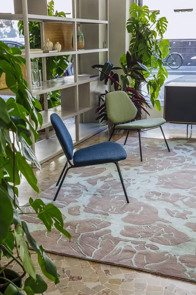 Contemporary hand knotted rug in viscose and natural wool.The name DaFé is taken from a tool used in carpet weaving which is tapped on the carpet to reinforce its knots. The DaFé collection started in 2014 from a study on old weaving methods and patterns. The experience of many generations in the field of carpets weaving and their knowledge of patterns and methods belonging to the various regions where this profitable craft started contributed to the creation of this unique hand-crafted collection. DaFé Collection is the result of a different approach to rugs as complementary parts of the interior environment. Despite appearing as an independent item, it has a strong and substantial harmonizing function. It is a versatile element that contributes to fulfilling a wide range of purposes such as the space’s mood, style and texture. Our work aimes at creating outstanding designs and using techniques of different eras belonging to different cultures and regions, to offer customers a handmade collection with a contemporary taste.Provenance: IndiaManual fabric cutting