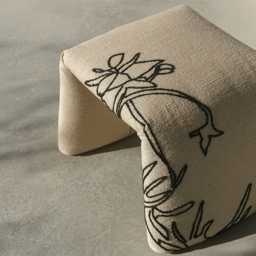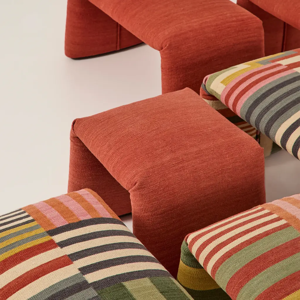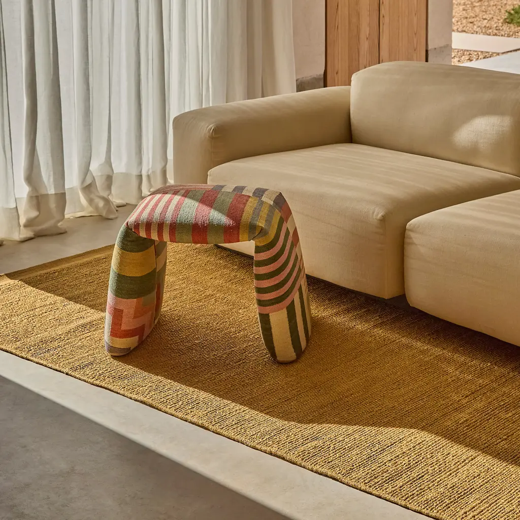 Elevate your space with the Folded Bench from Nanimarquina, a sculptural piece that reimagines the traditional rug as a functional and versatile furniture element. Its innovative design challenges boundaries, merging practicality and expressiveness in perfect harmony. Inspired by the essence of the carpet, this bench adds a touch of luxury to any room. Highlights