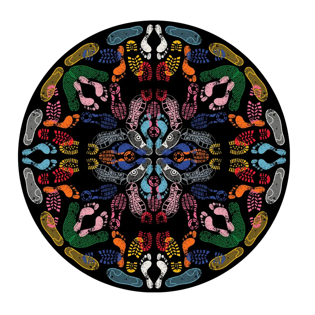Embrace the fusion of Eastern and Western cultures with the Foot Prints Round Rug by Qeeboo. Designed by Nynke Tynagel, this rug features a unique jam session of human and animal foot prints. The contrasting background adds a touch of magic, making this carpet an exclusive piece in any home.