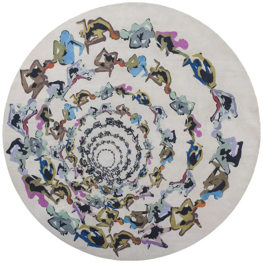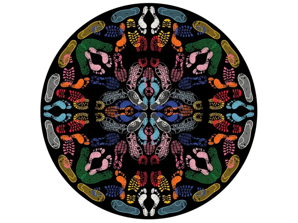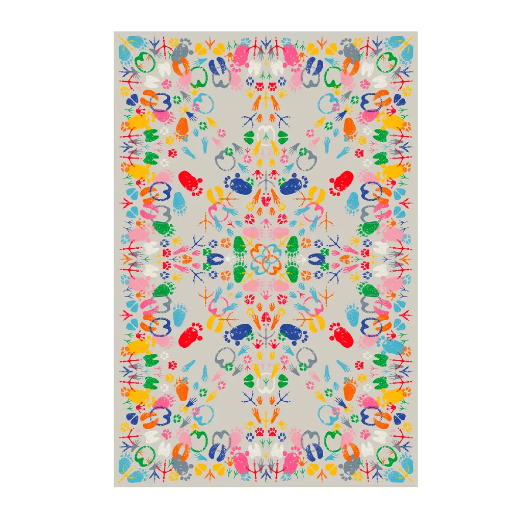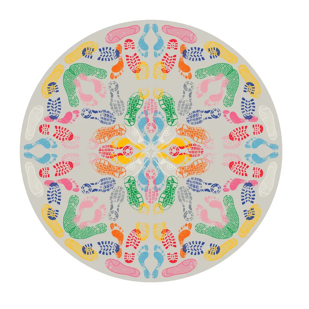 Embrace the fusion of Eastern and Western cultures with the Foot Prints Round Rug by Qeeboo. Designed by Nynke Tynagel, this rug features a unique jam session of human and animal foot prints. The contrasting background adds a touch of magic, making this carpet an exclusive piece in any home.