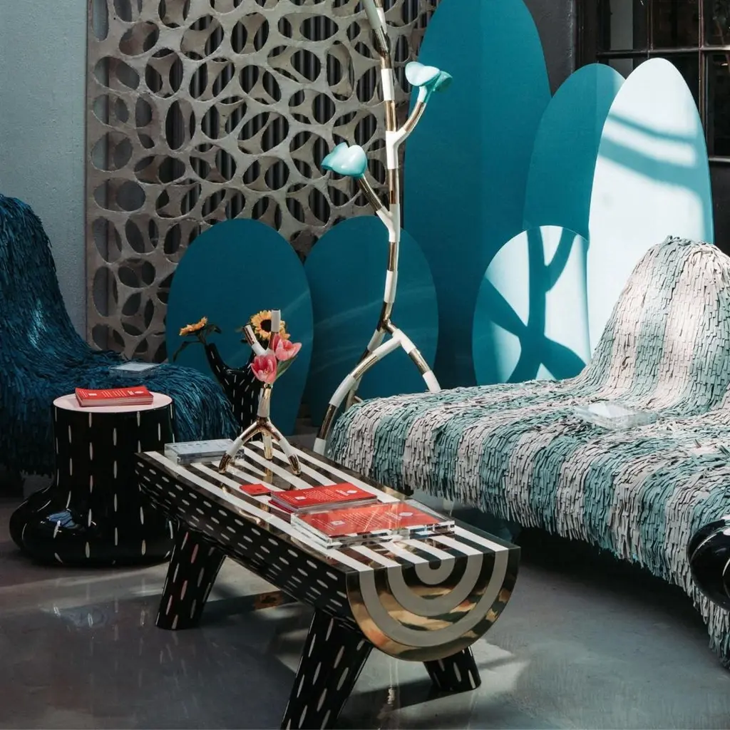 Forest bench with brass inlay by Marcantonio is a fun seat with a brass inlay top and "walking" legs.For his debut creations, Marcantonio introduced “Vegetal Animal”, a concept that evokes strong emotions to represent Nature. What only began as an exclusive chair, turned into sculptural wonders that include everything from cabinets, chairs, sofas to rugs and lamps. The furniture borders on caricatures of animal and plant forms with solid glossy colors but he suggests an “elegant irony” with the use of brass, suede, premium wool, an chic color palette and meticulous inlay work. A collection with mystery, humour, originality and functionality at the heart of each creation.Care: Wipe gently with dry soft cloth. In case of spillage of water wipe immediately. A premium liquid wax may be used occasionally to refresh the high gloss.Celebration of authenticity: Slight variations or imperfections are the marks of an artisan, a testament to the individuality, emotion and originality of each work of art. We assert our right to make meaningful qualitative changes.Please note: Prices do not include VAT. VAT may be applied depending on the ship-to location.