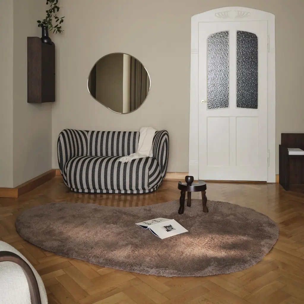 Imagine rising from the bed and stepping onto the welcoming plush texture of Forma. Ferm Living's hand-tufted rug in softest 100% New Zealand wool with a taller pile height delights with its monochrome colorway and generous organic contours. Apropos anywhere in the home, it's the perfect companion underfoot when a luxuriously indulgent floor covering is desired.