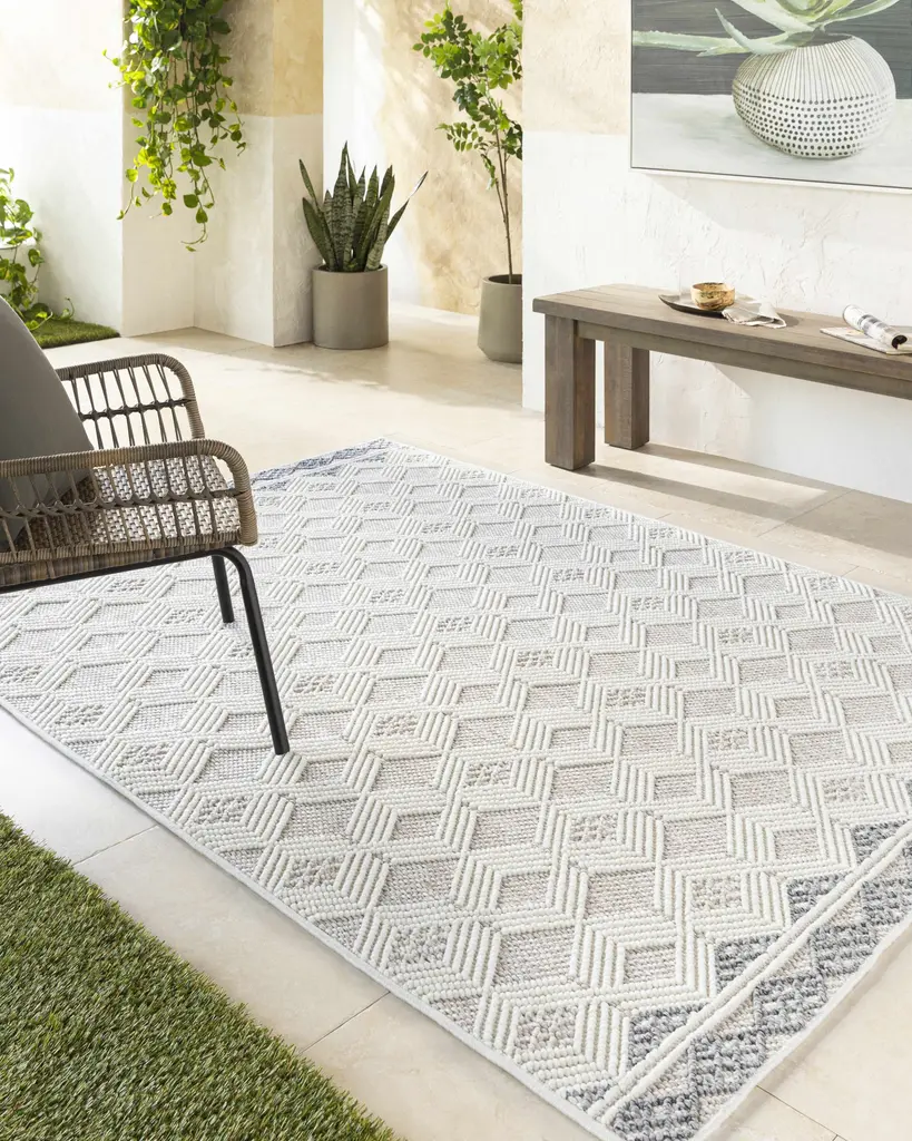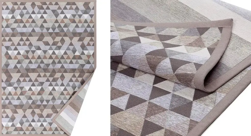 Fount is a double-sided carpet in chenille cotton/polyester with diamond design, finished with gray or beige border.The Fount collection is designed for small and extra small bathrooms. The freestanding washbasin is the protagonist of this collection, available in different textures: Ecopietra, Deimos white, Ecomalta, Geacryl matt in our colors.Thanks to these materials you can create amazing atmospheres that you can discover in this catalogue. Within this collection were born many furnishing accessories, such as towel racks in round shape, to accompany your freestanding for your beauty routine, or have fun creating compositions with the colors you love the most. If you prefer sculpture and art, you can opt for the freestanding towel holder/bathrobe, an object to be admired while taking a hot bath.The mirrors are also innovative, with new shapes and trends such as the total body mirror and mirrors container.The textile complements instead will be an absolute Mobilcrab news, where you will find colorful poufs available in 5 textures: nero ,blue, ocra, verde, borgogna and elegant carpets in their geometric shapes and colors that you can customize according to your project.