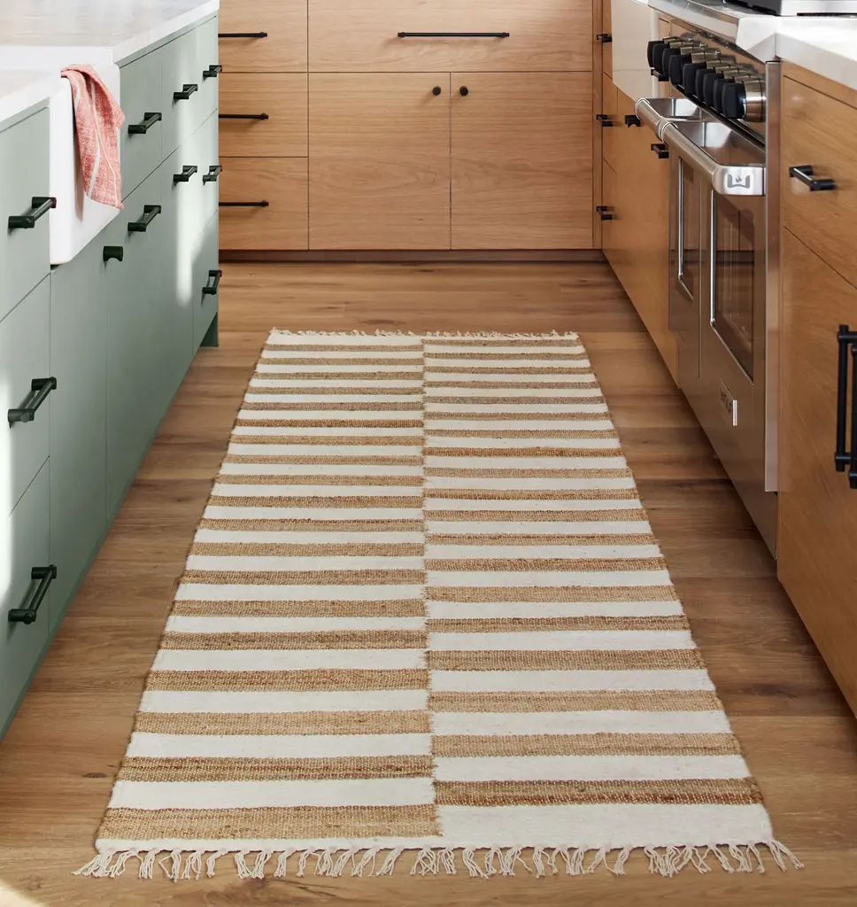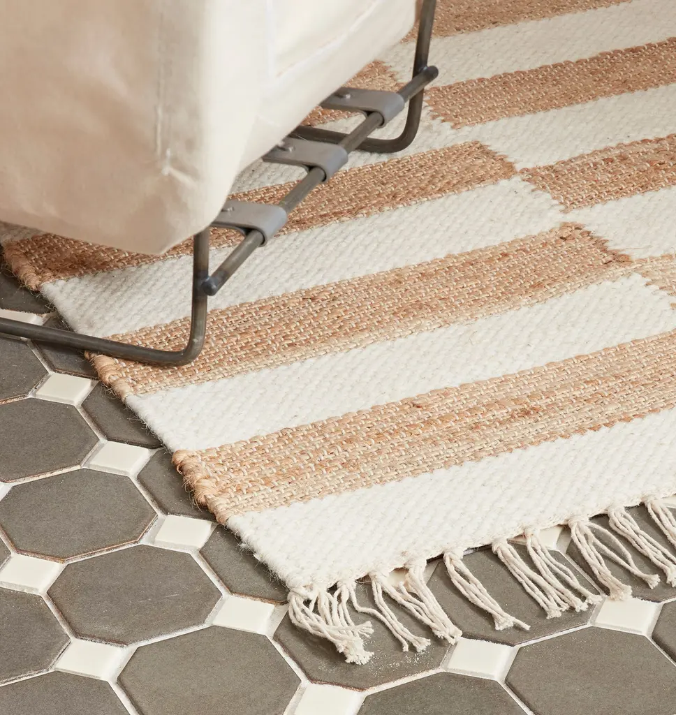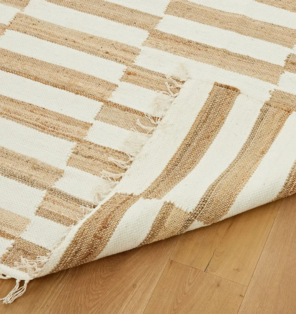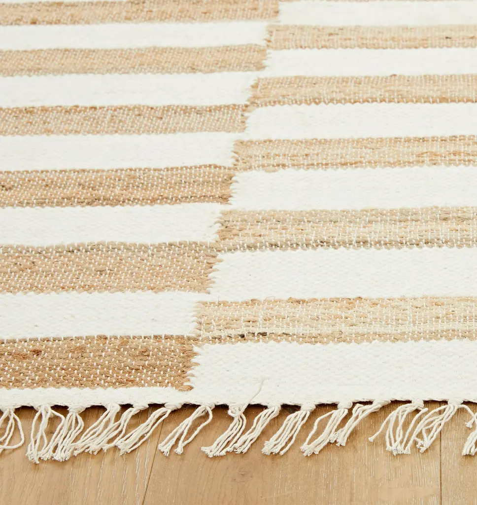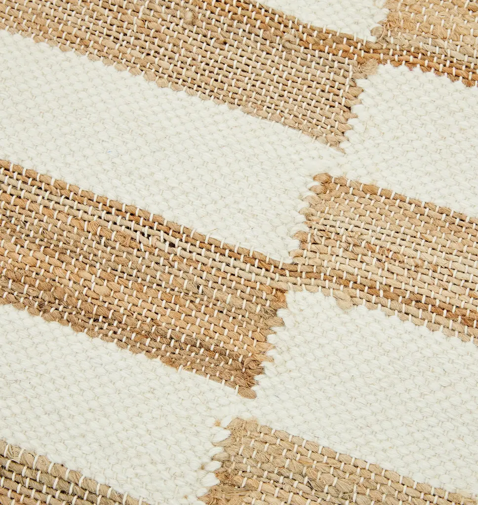Handcrafted from a combination of durable jute and wool, our Fouts Jute Flatweave Rug features a neutral ladder design that fits perfectly in any living, dining, or laundry room. Its flatweave construction is easy to maintain and works well in high-traffic areas. Details You'll Appreciate Ideal for high traffic areas Reversible Crafted 100% by hand by skilled weavers in India using a traditional flatweave technique Product Specifications 40% Wool , 40% Jute and 20% Cotton Scale of motifs, pattern, and borders will adapt according to rug size Corner swatch represents 8" x 10" motif Use of a rug pad recommended Handcrafted in India