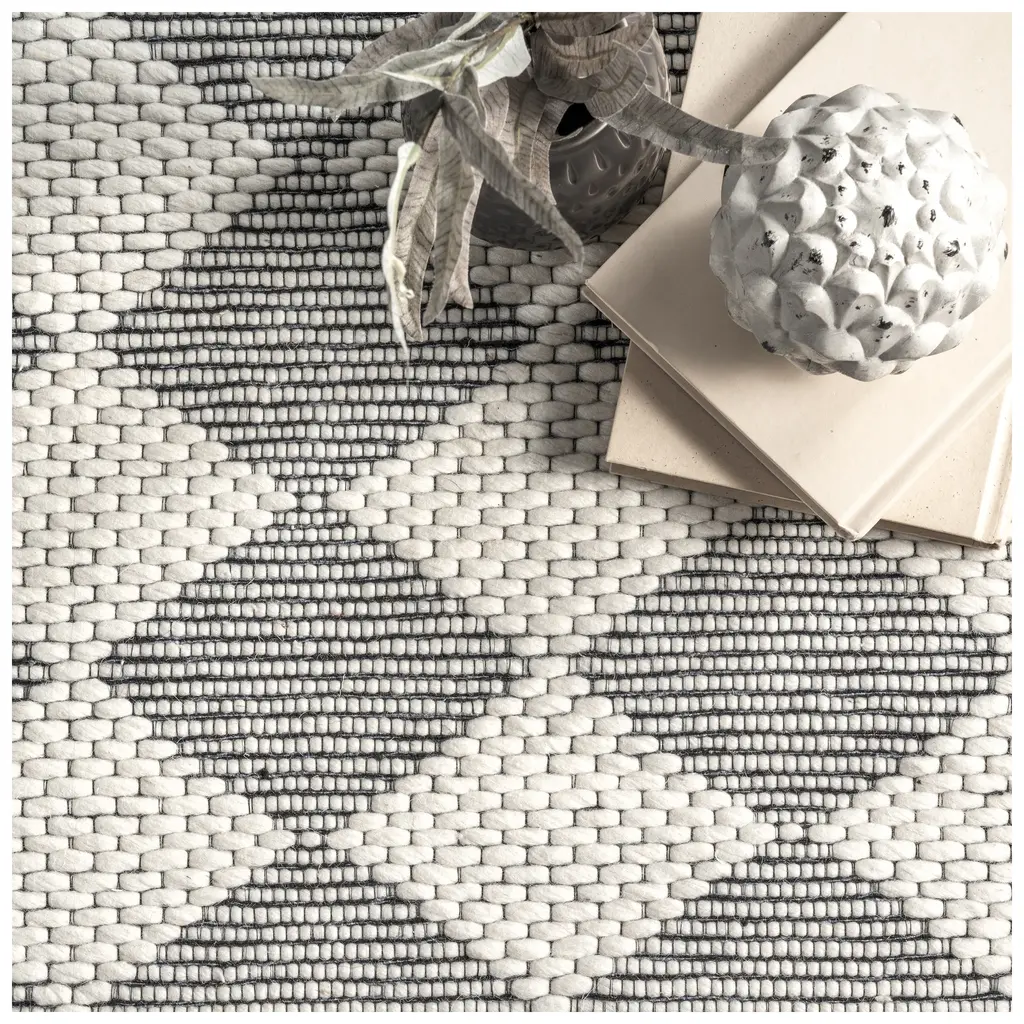 Fractal Diamond Wool Area Rug, Grey 6'x9'