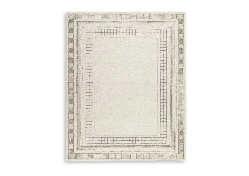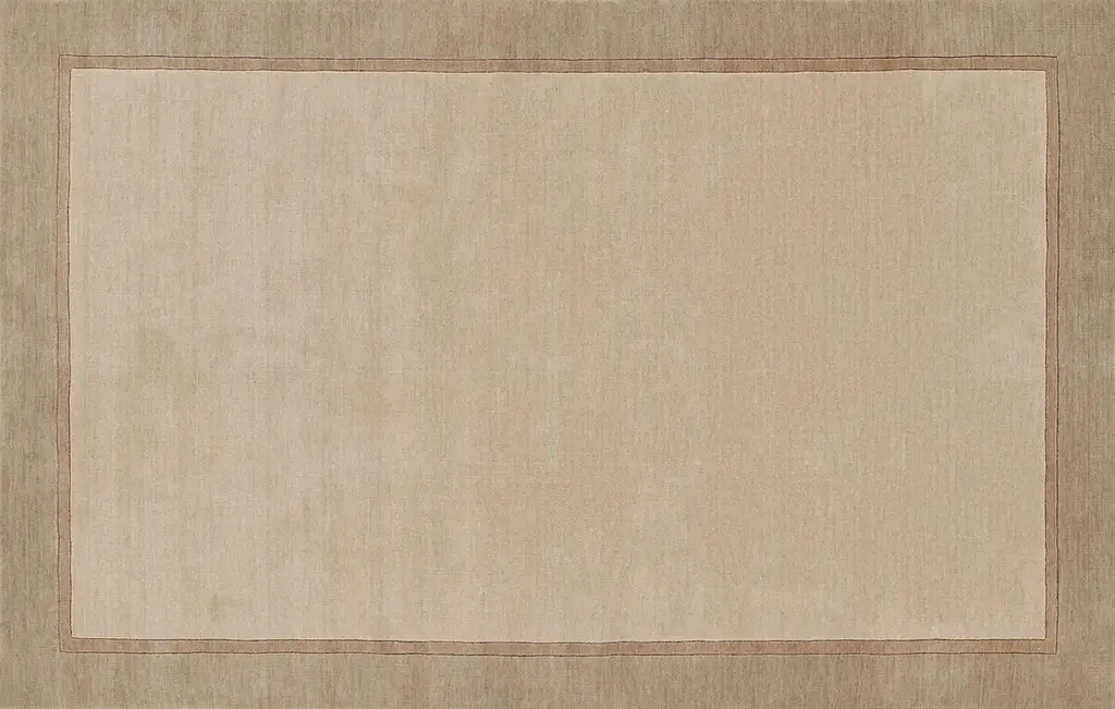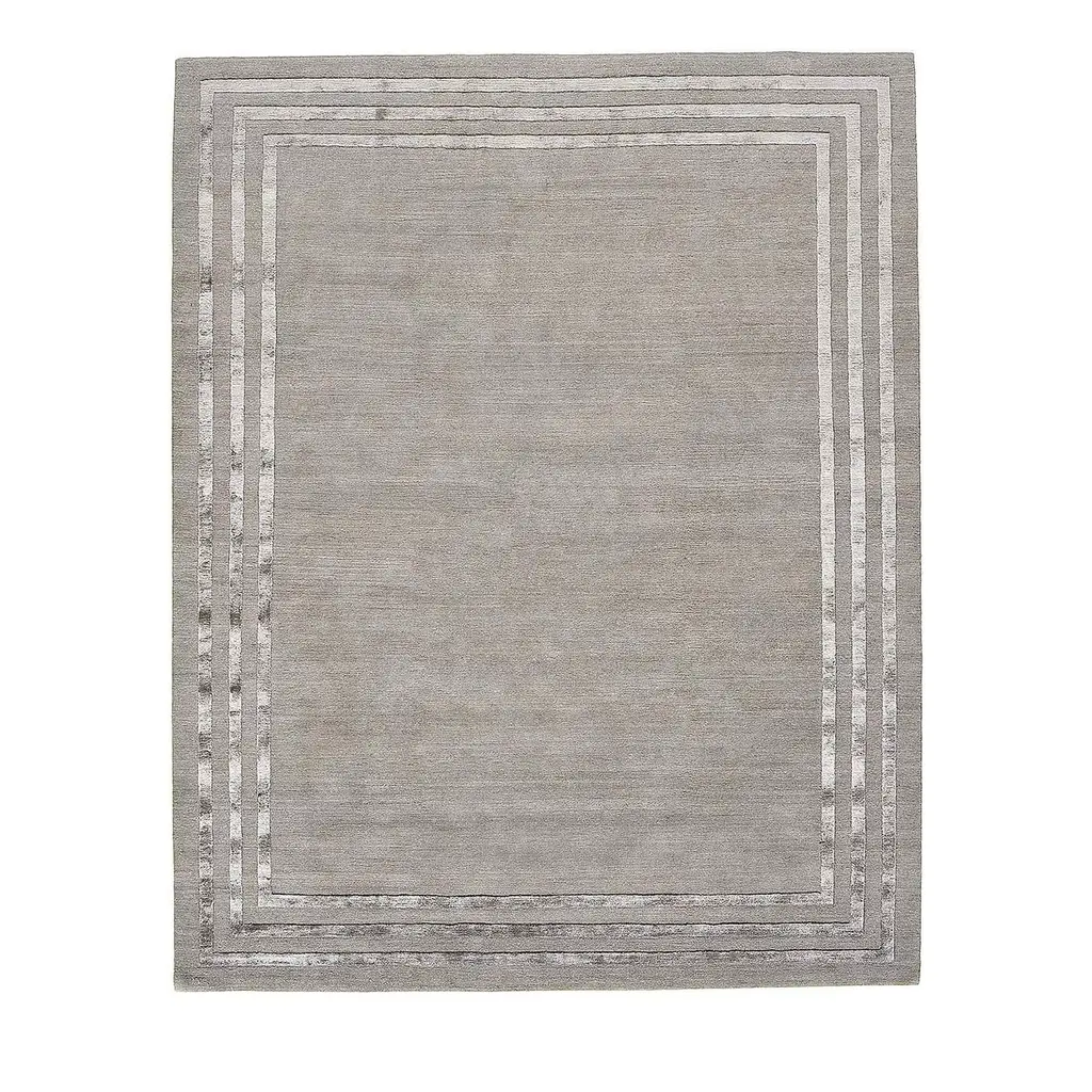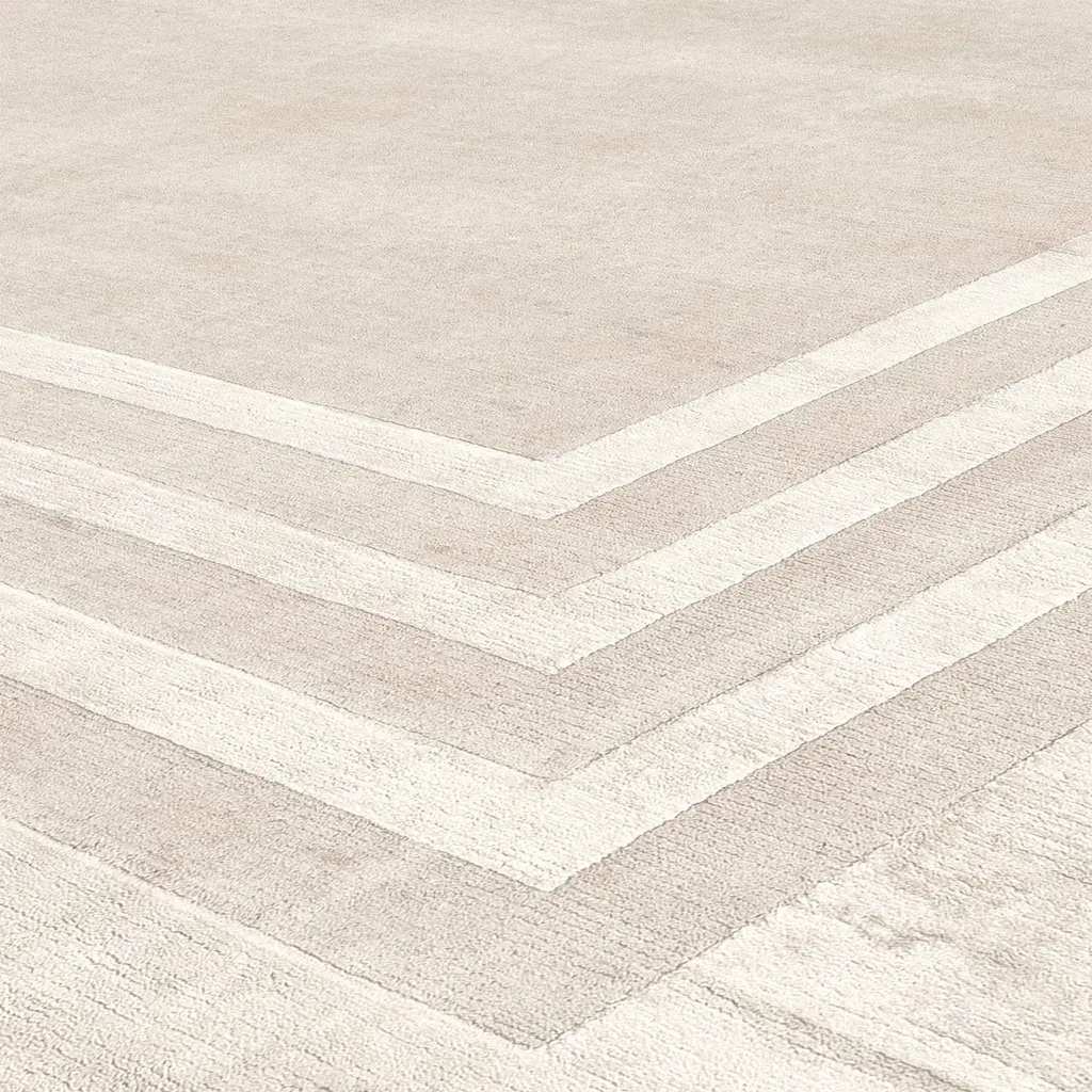 The warmth of Himalayan wool and the shimmering effect of fine silk create this welcoming rug, whose .05cm-high base flaunts a sober design (H .07cm) of concentrical frames of quiet elegance. This 152,000 knot/sqm piece is hand-knotted by Nepalese artisans and features a total combination of 20% silk and 80% wool rendered in delicate shades of beige and taupe. A wide range of customizations as well as an anti-stain treatment are available, please ask the Concierge for options and pricing.