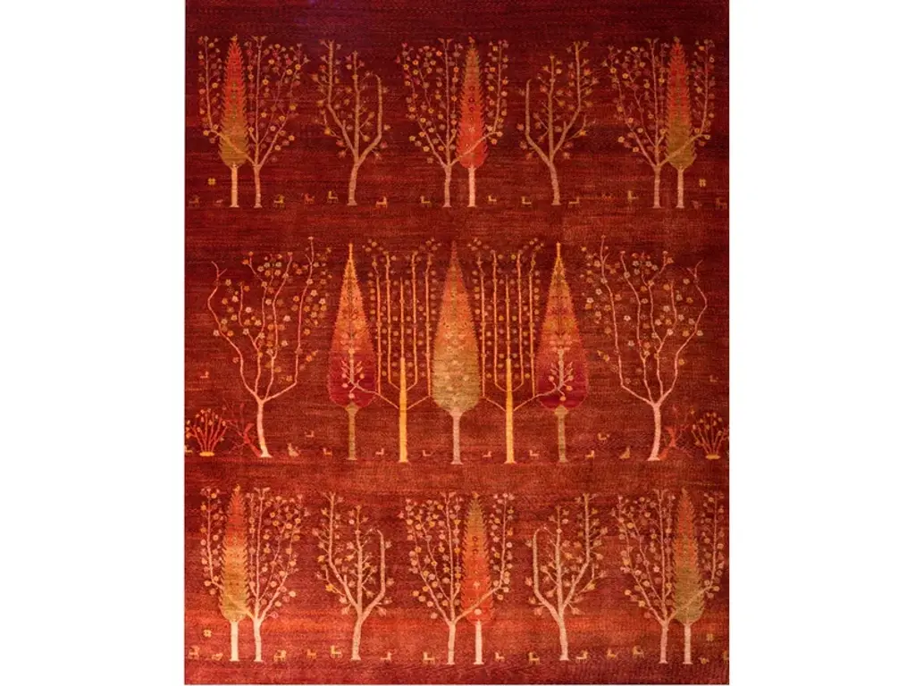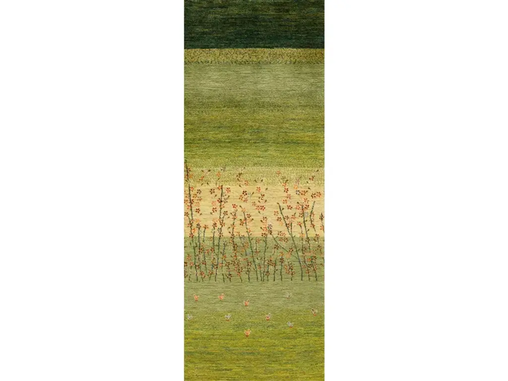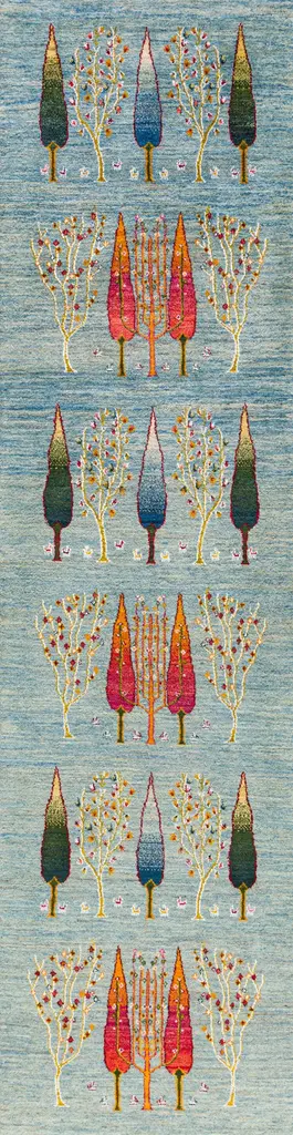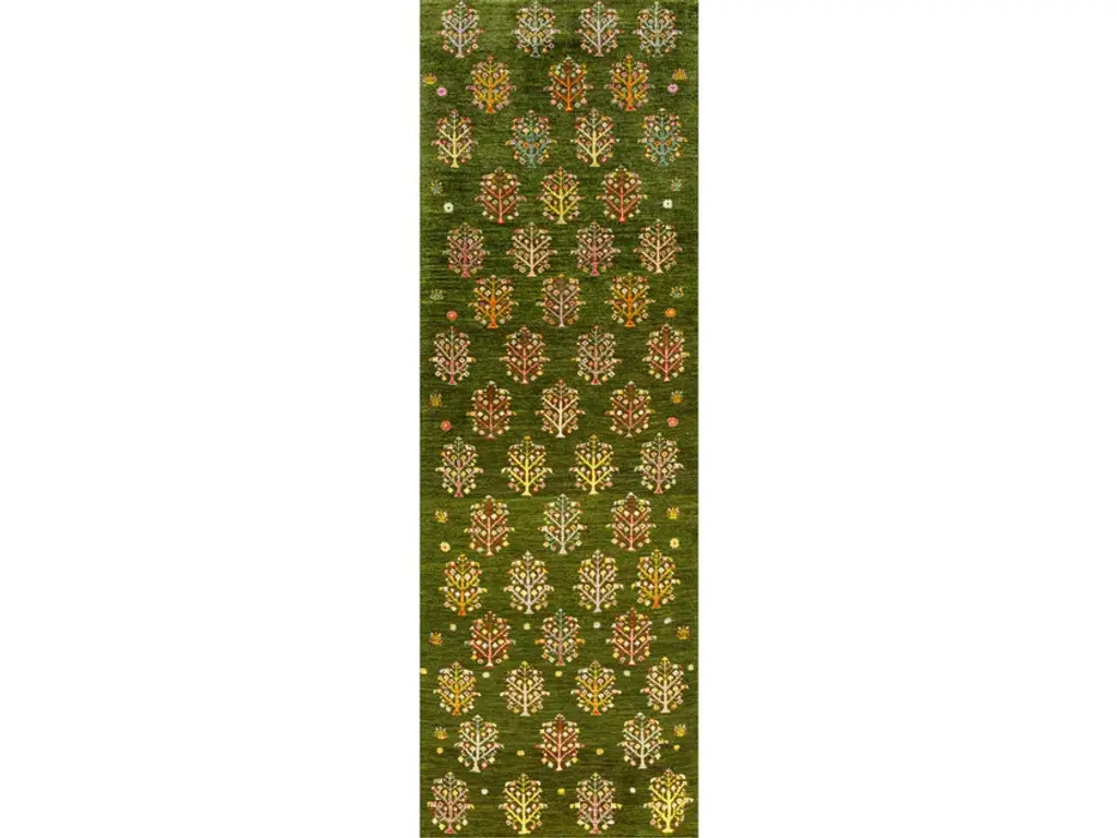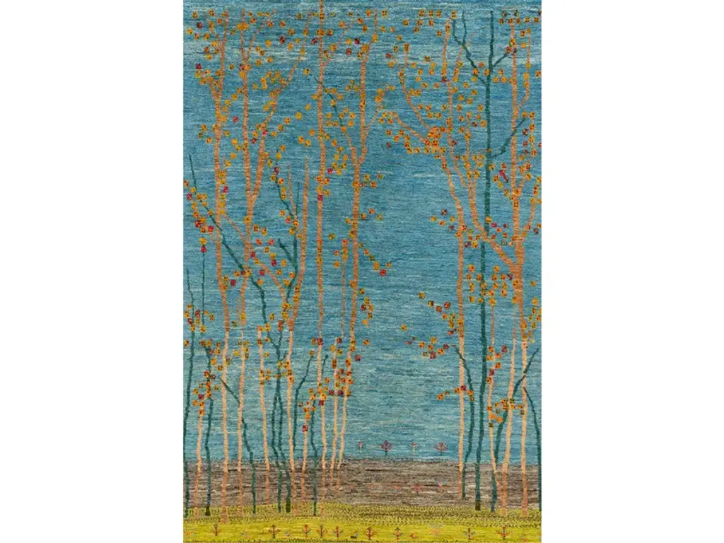 Framed Naïve Cypress Orchard 1 is a rectangular wool rug.Zollanvari Super Fine Gabbeh.The Landscape collection is an integral part of the Zollanvari Gabbeh range. The majority are in Zollanvari Super Fine quality, woven by Ghashgha’i nomads from the Fars Province, who are renowned for extremely fine carpets such as Kashkuli Bibibaff and Wasir Machsus. With this in mind we turned to them for the extremely demanding production of our modern Zollanvari Super Fine Gabbehs. The designs and symbols used are rooted in the old Gabbeh design canon that Zollanvari have reinterpreted with a modern twist and to suit modern interiors and sensibilities.