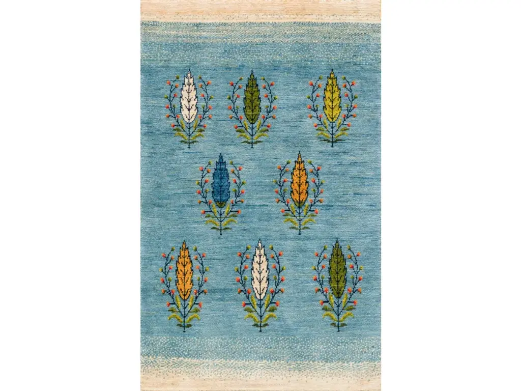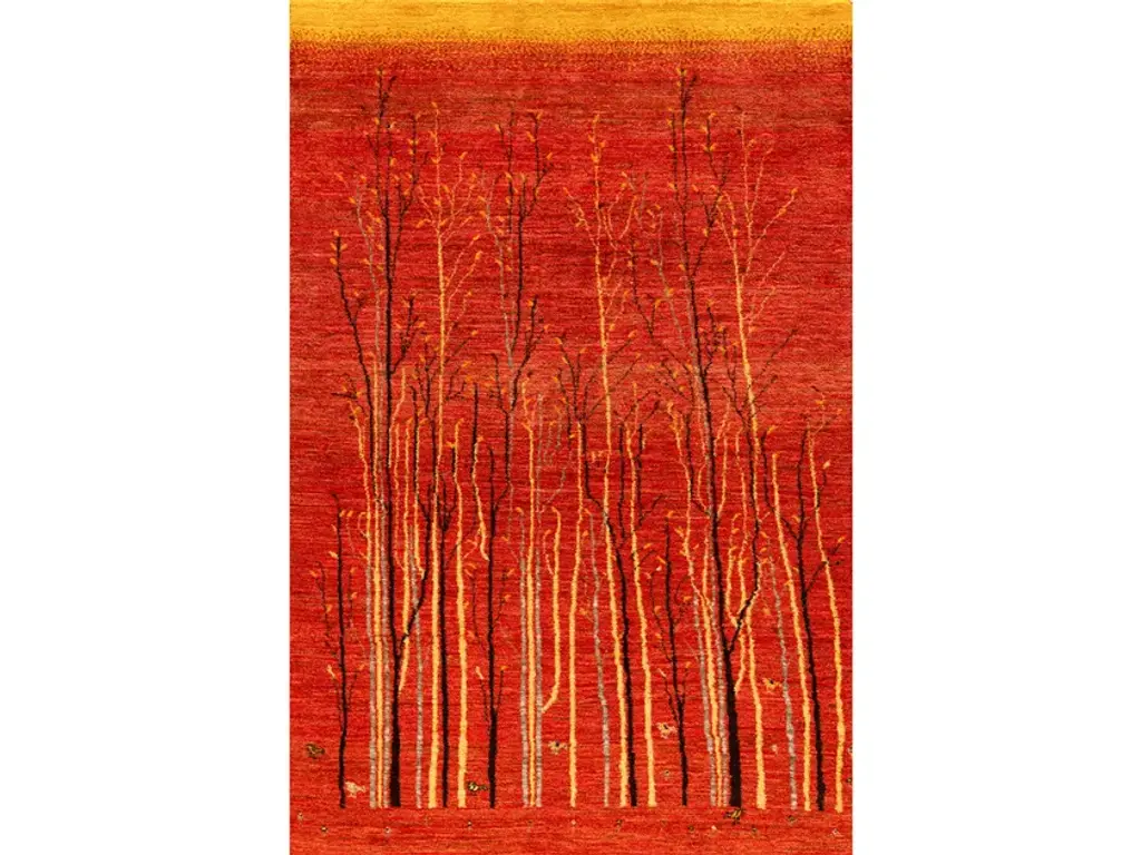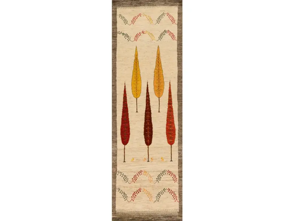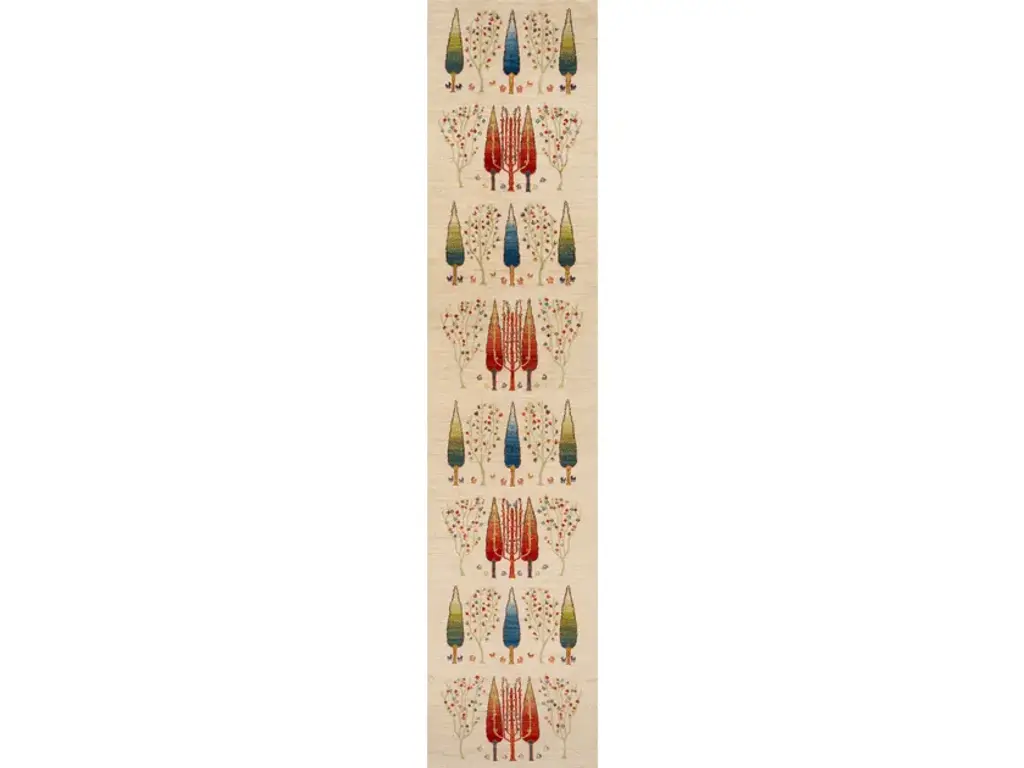 Framed Naïve Cypress Orchard 1 is a rectangular wool rug.Zollanvari Super Fine Gabbeh.The Landscape collection is an integral part of the Zollanvari Gabbeh range. The majority are in Zollanvari Super Fine quality, woven by Ghashgha’i nomads from the Fars Province, who are renowned for extremely fine carpets such as Kashkuli Bibibaff and Wasir Machsus. With this in mind we turned to them for the extremely demanding production of our modern Zollanvari Super Fine Gabbehs. The designs and symbols used are rooted in the old Gabbeh design canon that Zollanvari have reinterpreted with a modern twist and to suit modern interiors and sensibilities.