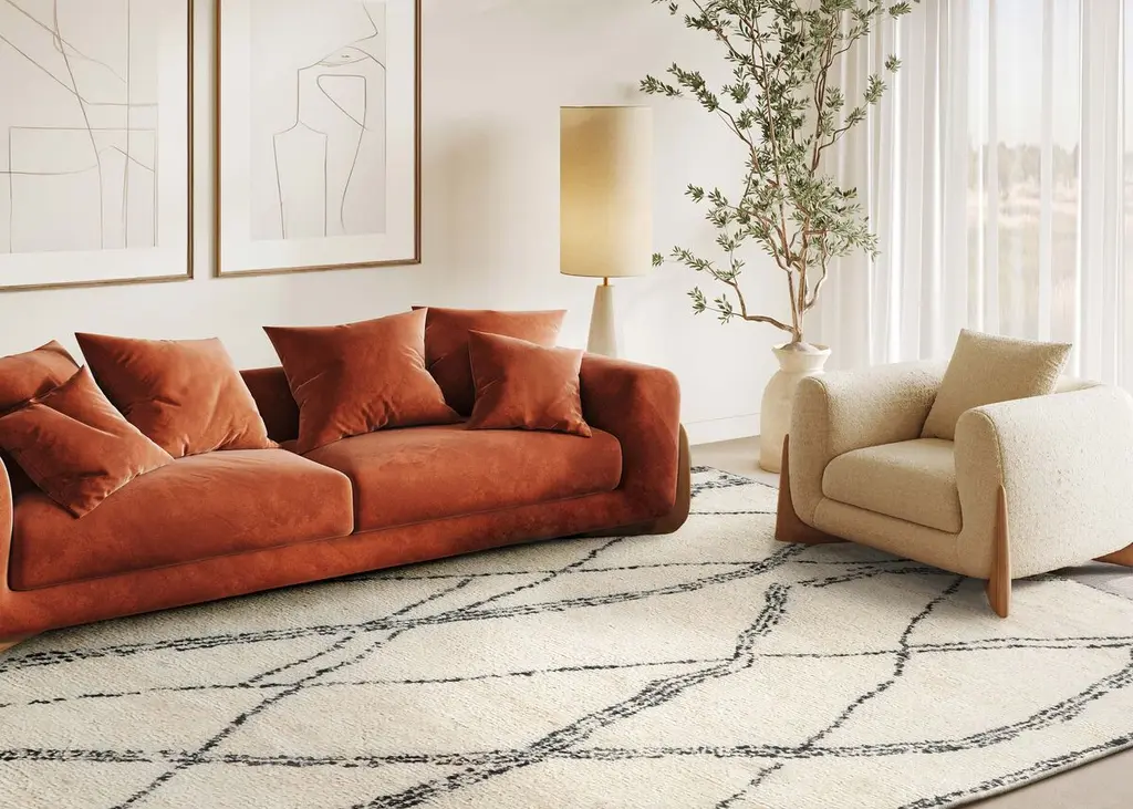 These large-scale Moroccan or Bohemian inspired designs of 100% wool are bold, exotic patterns. The heathered colorations are offset by softer neutral shades and contrasting accents. Large geometric shapes create rich and dynamic textures, an eclectic addition to any space with ultimate comfort underfoot.