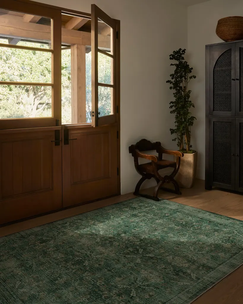 Elegant. Timeless. Inviting. Inspired by vintage jacquard textiles, our Frances Jade Green Rug features a design composed of repeated artistic motifs. Deep greens mix harmoniously with softer jades, while rich gold accents and delicate cream details add warmth and elegance to the overall design. Its inviting palette and antique texture brings an air of elegance to any room. Water-resistant, stain-resistant, and machine-washable. Rug colors may vary slightly according to your device and the lighting in your space.