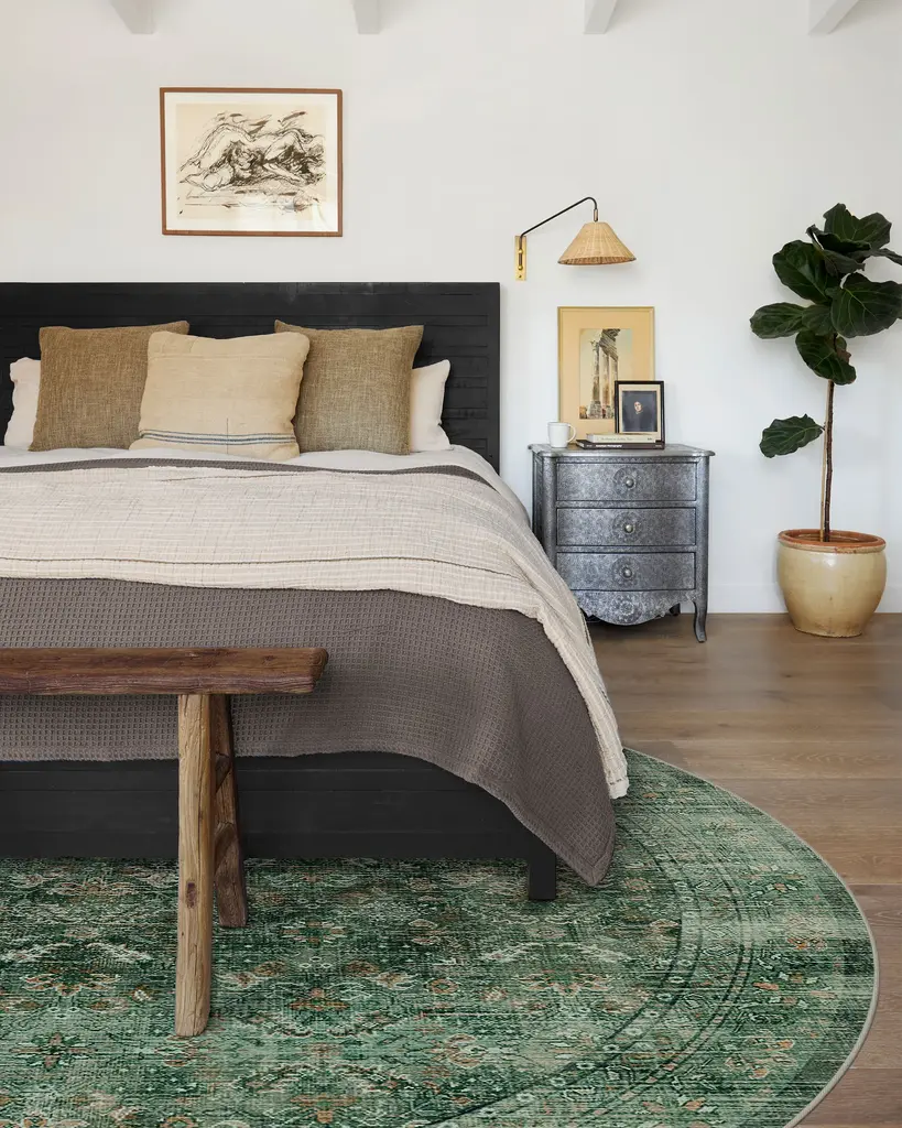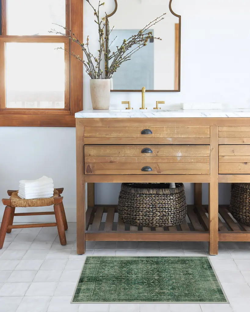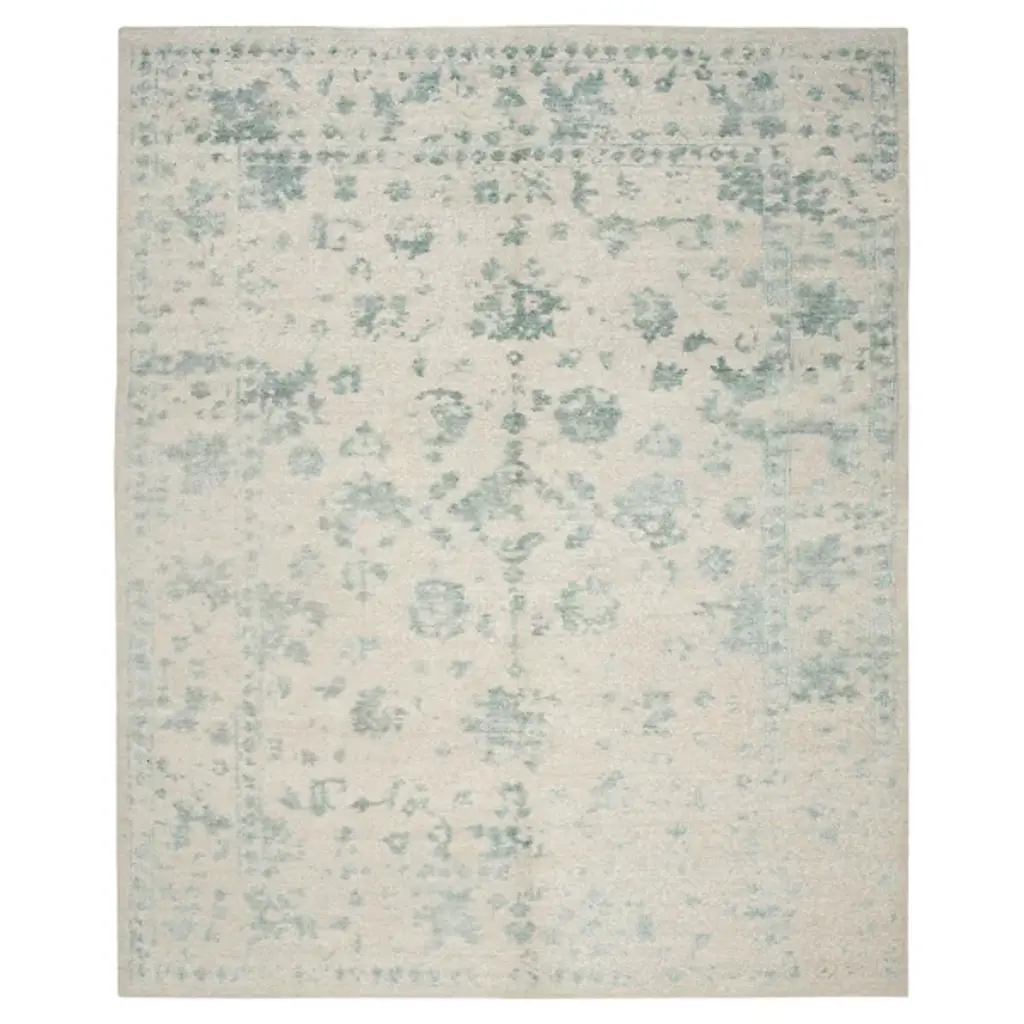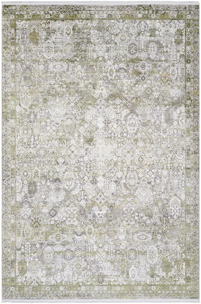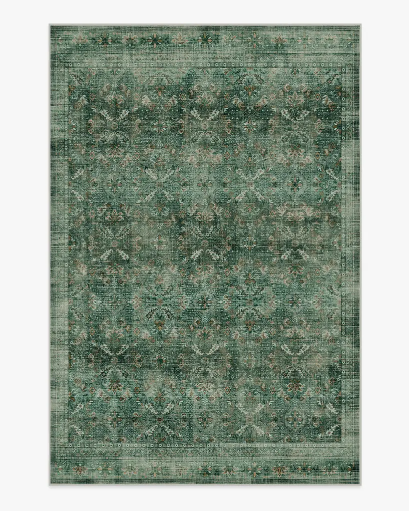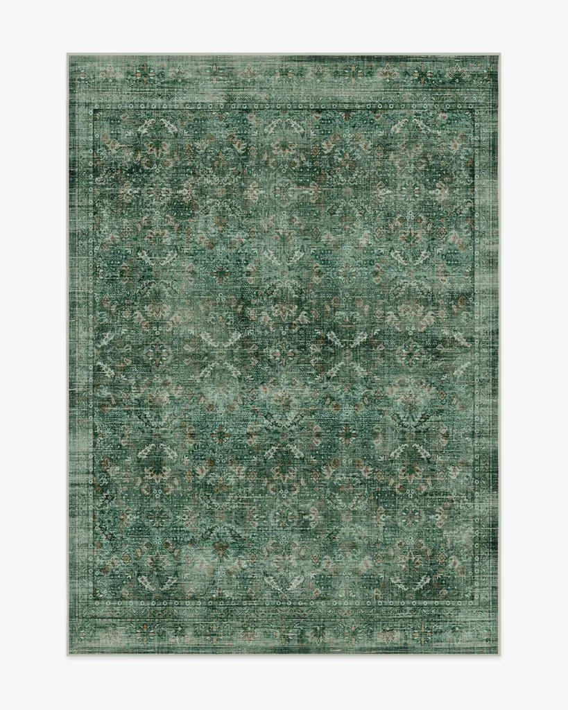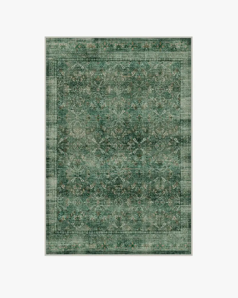 Elegant. Timeless. Inviting. Inspired by vintage jacquard textiles, our Frances Jade Green Rug features a design composed of repeated artistic motifs. Deep greens mix harmoniously with softer jade, while rich gold accents and delicate cream details add warmth and elegance to the overall design. Its inviting palette and antique texture brings an air of elegance to any room. Water-resistant, stain-resistant, and machine-washable. Rug colors may vary slightly according to your device and the lighting in your space.