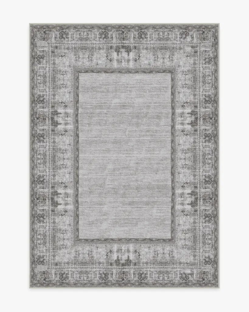 Elegant. Timeless. Inviting. Inspired by vintage jacquard textiles, our Frances Stone Grey Rug features a design composed of repeated artistic motifs. Offering a vintage-like elegance, the cool greys, neutral blues, taupes, and hint of warmer beige tones blend harmoniously against a grey background. Water-resistant, stain-resistant, and machine-washable. Rug colors may vary slightly according to your device and the lighting in your space.