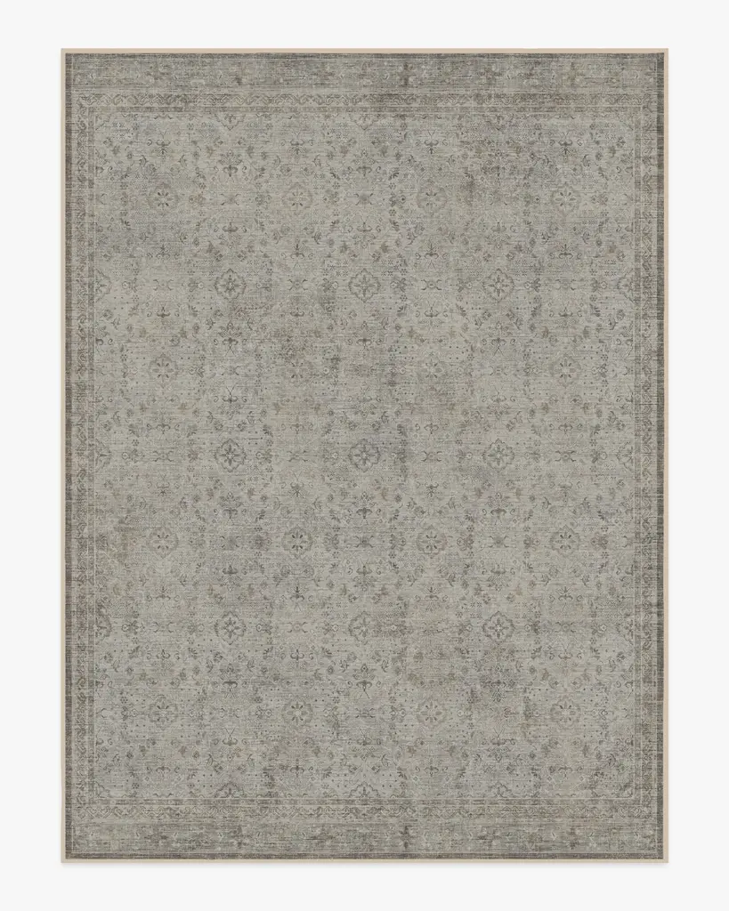 Elegant. Timeless. Inviting. Inspired by vintage jacquard textiles, our Frances Stone Grey Rug features a design composed of repeated artistic motifs. Offering a vintage-like elegance, the cool greys, neutral blues, taupes, and hint of warmer beige tones blend harmoniously against a grey background. Water-resistant, stain-resistant, and machine-washable. Rug colors may vary slightly according to your device and the lighting in your space.