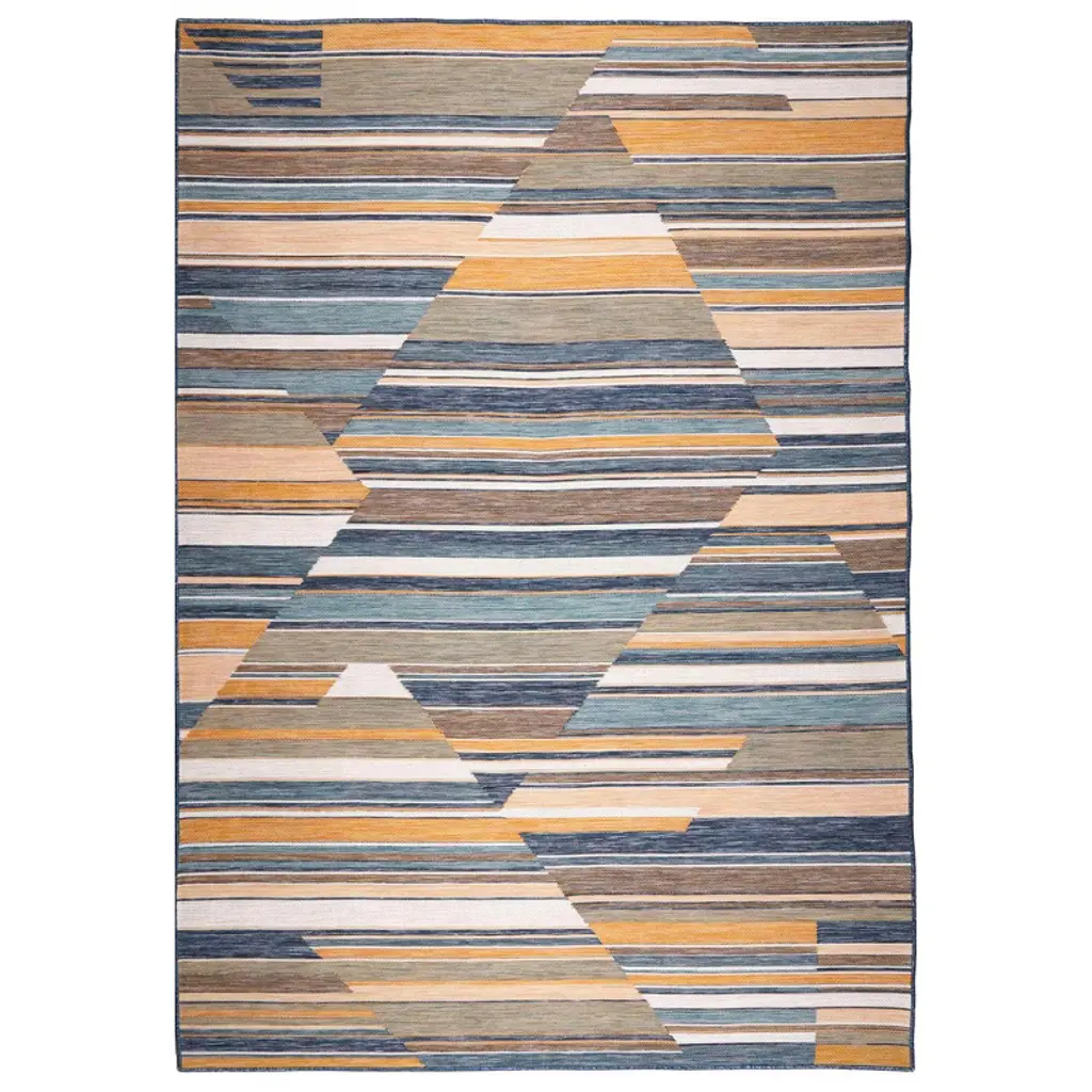 Discover the Usonia area rug, a remarkable collaboration piece between the Frank Lloyd Wright Foundation and Livabliss that effortlessly merges modern design with functionality. This machine-woven masterpiece from Turkey flaunts an irregular pattern that is both unique and visually stimulating. Its white and tan base is punctuated with pops of brown, gray, ice blue, burnt orange, and saffron for a dynamic color scheme that complements any contemporary d?cor. Made of durable polyester, this rug can withstand high-traffic areas while maintaining its allure thanks to its medium pile height. For added style, it features a fringe detail on the edges adding to its distinctive appeal. To ensure longevity and vibrant color retention, we recommend using a rug pad underneath and spot cleaning with mild detergent when necessary. Add this stunning statement piece to your space today!