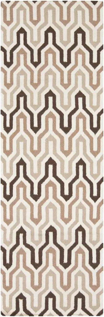 Collection: Franklin Colors: Dark Brown, Cream, Medium Brown, Tan Construction: Hand Woven Material: 100% Wool Pile: No Pile Styles: Transitional Made In: India Thickness: 0.16" Price Range: $$$$$ (Most Affordable)