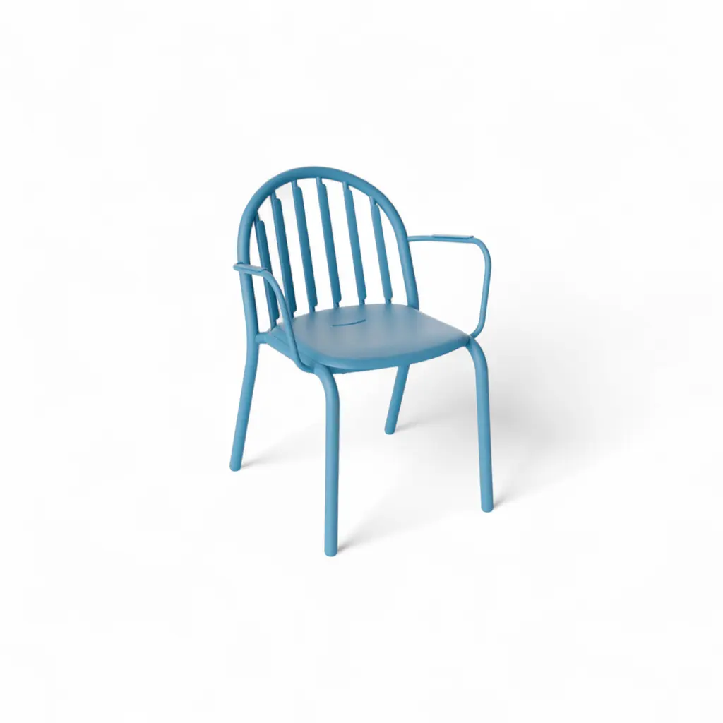 A trimmed-down café table—just enough surface for two plates, a bottle, and the habit of lingering. Fred’s Bistreau sets a powder-coated aluminum top on a single steel stem that drops into a cast-iron base, so it feels light to move yet refuses to wobble once you’ve parked it. Twist the discreet foot pads if your patio isn’t quite level. The finish shrugs off UV glare and surprise showers; a quick wipe sends crumbs and coffee rings packing. Square in plan, rounded at the corners, it pulls up neatly against a balcony rail or slides between two lounge chairs without crowding the walk-through. Pair it with one or two Fred chairs for an impromptu breakfast station, or line up several in a row when the party needs grazing space. When the season shifts, the top unbolts and the whole thing tucks into storage without drama.