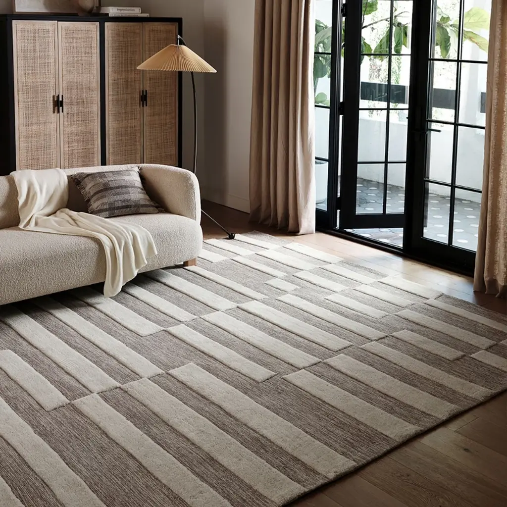 Frenshe Interiors X Rugs Usa - Baja Broken Stripe Indoor Area Rug, 5' X 8', Baja Ivory