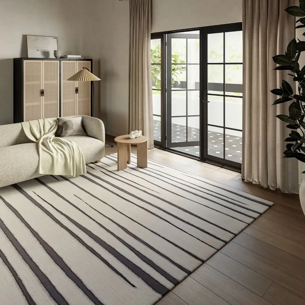Meet the Studio Striped New Zealand Wool Rug. It’s luxe, made of highly sought-after New Zealand wool, and super plush—an actual dream of a décor piece. Part of the Frenshe Interiors x Rugs USA collaboration, this style illustrates actress and designer Ashley Tisdale's vision that home can be elevated, warm, and welcoming, all at once. With its rich, handmade, high-low texture and organic linework, this rug strikes the ideal balance between modern design and cozy comfort.