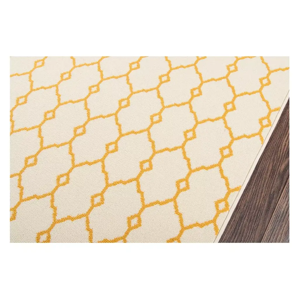 This elegant indoor/outdoor all-weather area rug offers everything you need to complete the ultimate outdoor room. Repeating stripes, diamonds, trellis and arabesque shapes meet nautical icons like ropes, anchors and waves, adding a luxe layer to all interior and exterior living spaces, including patios, porches and pool decks. Durable power-loomed construction ensures each decorative floorcovering transitions beautifully from season to season while the vibrant color palette and enduring polypropylene fibers offer endless design possibilities indoors and out.