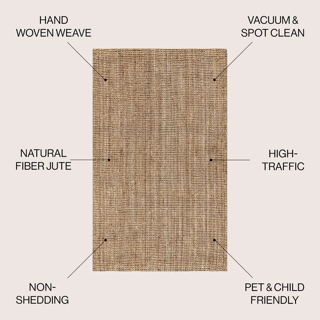 Natural jute fiber and a chunky texture make this handwoven rug a great addition to your home. The solid jute color works almost anywhere, in both modern or traditional rooms. This rug is reversible for longer wear.